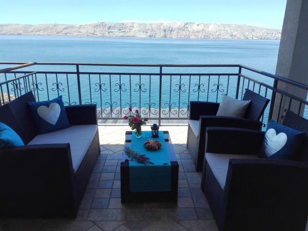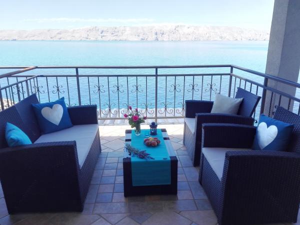 Vrlo ljubazni vlasnici, čist i ugodan apartman s prostranim balkonom s pogledom na more. Apartman ima savršenu vanjsku kuhinju s mjestom za sjedenje na hladnom i prekrasnu opuštajuću ljuljačku. Put do plaže ispod apartmana je dijelom po stepenicama, dijelom kamenom stazom. Imali smo skoro privatnu plažu. Voda je na tim mjestima hladnija, ali bistra. Postoje i druge, toplije plaže na pješačkoj udaljenosti, ili samo kratkom vožnjom/kupanjem od obale :-) U mjestu nema trgovine, ali svaki drugi dan, dva puta tjedno FamilyFrost dolazi dostavni kombi s pecivom. Veći šoping cca 20 km SvetiJuraj ili Senj. Potpuno opuštajući odmor za nas!