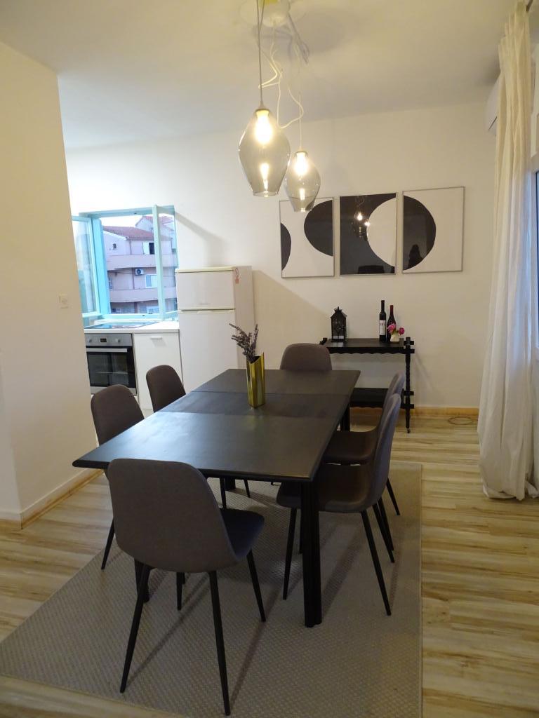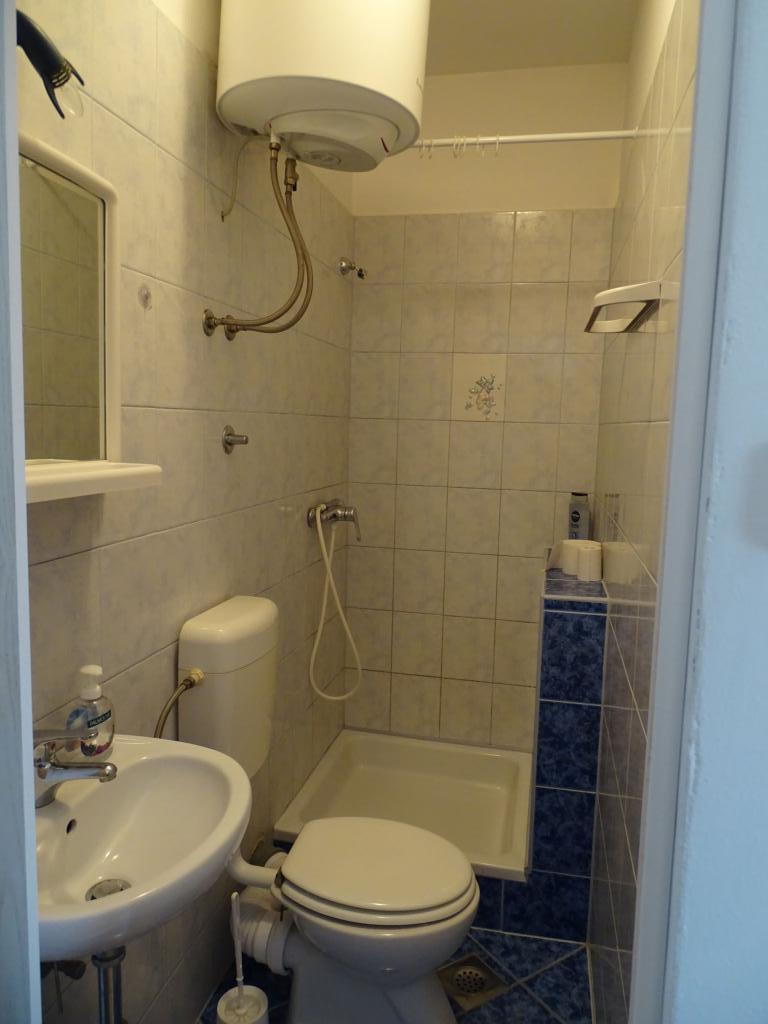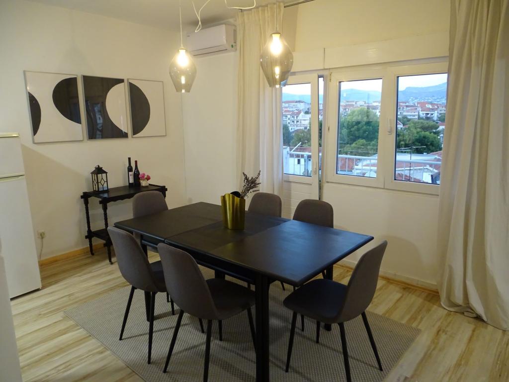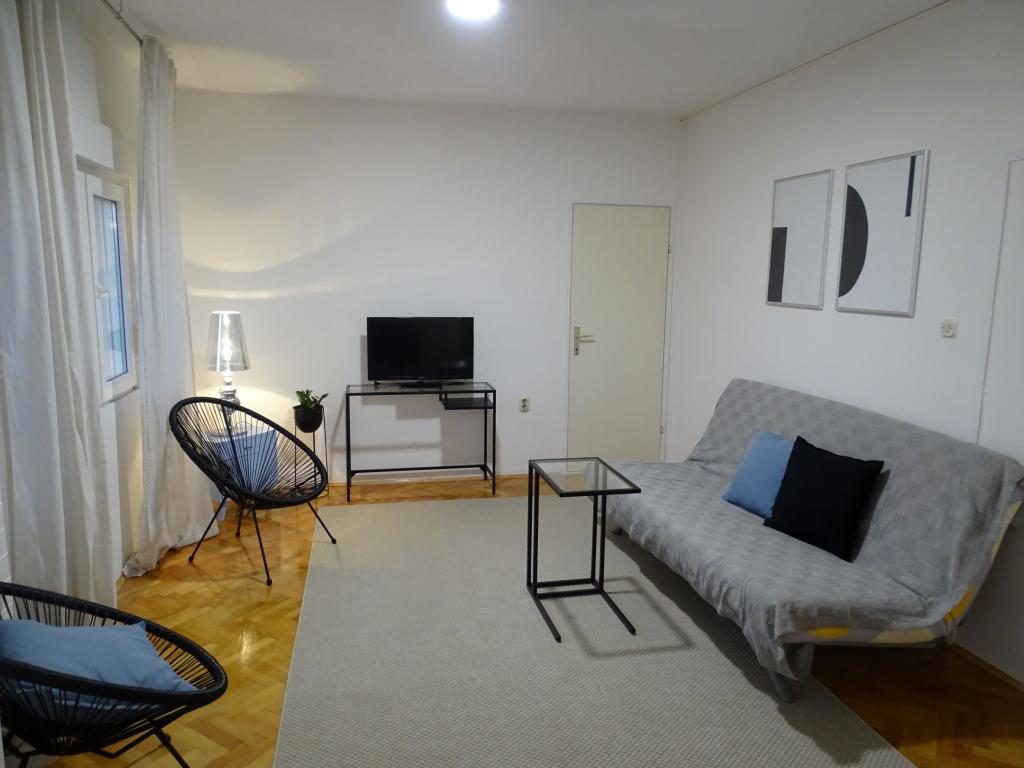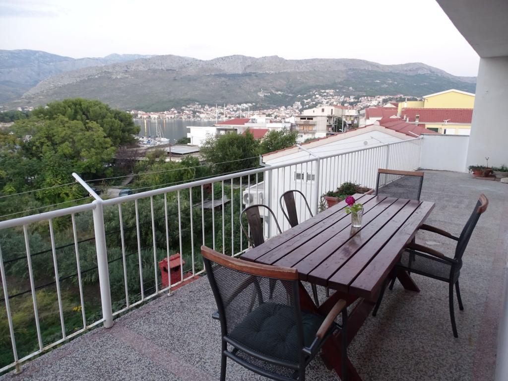 Kompletno opremljen cetverosobni prostrani apartman sa velikom terasom i prekrasnim pogledom. Nalazi se na 2.katu, ujedno i zadnjem manjeg stambenog objekta. Objektu je moguce pristupiti automobilom, a sam parking je moguc na privatnom parkingu uz nadoplatu. Smjesten je u staroj jezgri Stobreca, na polutoku, te je vise plaza dostupno laganom setnjom do 100m udaljenosti. Centar mjesta sa restoranima, kaficima, ljekarnom, parkom, djecjim igralistem, autobusnim stajalistem i kasinom se nalazi 100m od apartmana.