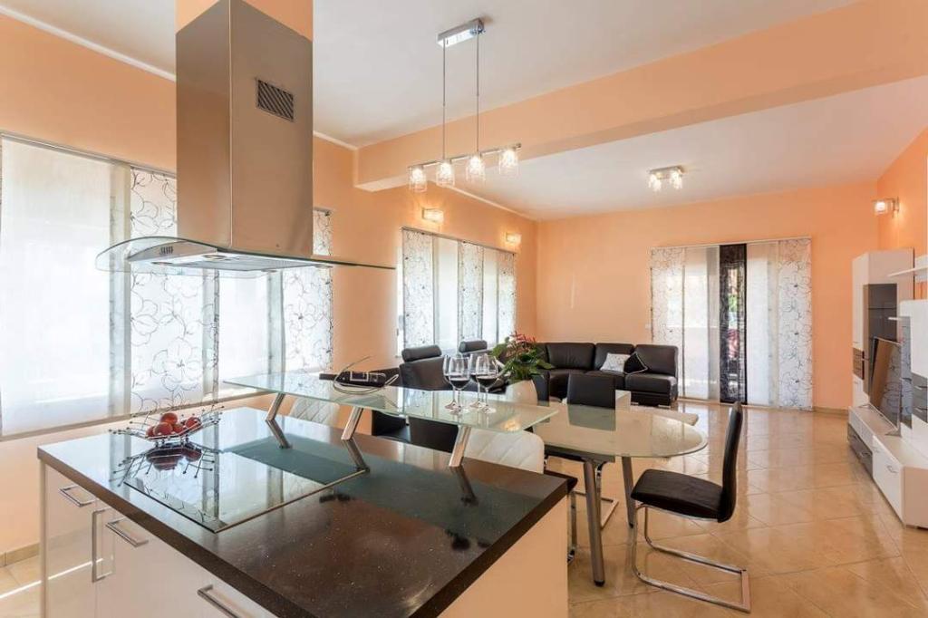 Kompletno i suvremeno opremljeni apartmani u mirnom predjelu. Objekt se nalazi 10 min laganog hoda do plaže i centra mjesta Stobreča. Centar grada Splita udaljen je 10 km. U blizini smještaja se nalaze tereni za golf i tenis