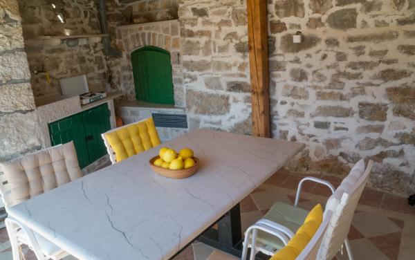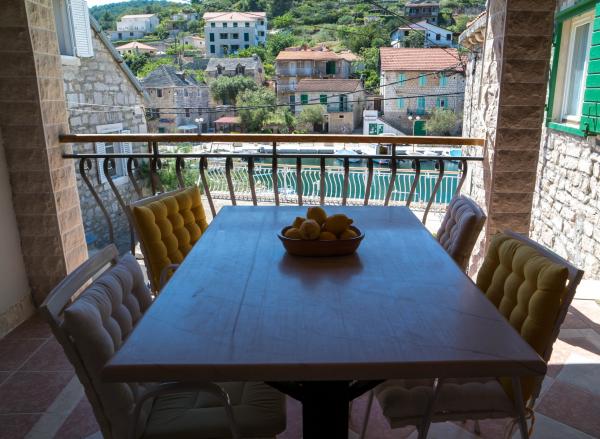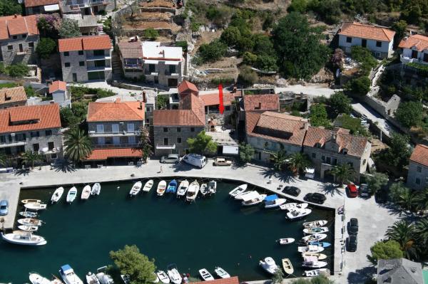 Osjetite duh starog dalmatinskog ribarskog mjesta u apartmanu smještenom na živopisnoj rivi. Sve što Vam je potrebno za početak dana, od pekare i dućana do kafića i restorana, nalazi se u neposrednoj blizini apartmana. U dvoru, uređenom u dalmatinskom stilu, je kamin koji Vam stoji na raspolaganju, a slobodni ste uživati u pogledu na uvalu sa terase. Predivne plaže su udaljene samo nekoliko minuta hoda.