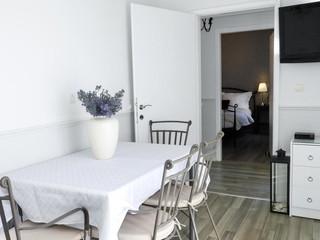 Turistička pristojba je uključena u cijenu.OSTALE INFORMACIJE: 1) MAKSIMALAN BROJ OSOBA U APARTMANU U apartmanu može boraviti samo naznačeni maksimalan broj gostiju: Apartman SUNCE: 2 gosta. Apartman MORE: 4 gosta. Nemamo mogućnosti stavljanja pomoćnih kreveta. 2) ADULTS ONLY Zbog horizontalno postavljenih drvenih elemenata ograde, po kojima se djeca mlađe dobi mogu penjati ili provlačiti se između njih, nažalost: ograničeni smo kod ugošćavanja djece dobi do 12 godina. 3) KUĆNI LJUBIMCI Kućni ljubimci nisu dozvoljeni, ne zato što ih ne volimo - i sami imamo 2 kućna ljubimca (dva psa do 10 kg). 4) POVRAT AKONTACIJE Ako gost ne dođe u apartman, uplaćena akontacija zadržava se u 100% iznosu. Ako gost otkaže rezervaciju u periodu 45 dana prije datuma dolaska: zadržava se 80% akontacije. Ako gost otkaže rezervaciju u periodu između 90 i 45 dana dana prije datuma dolaska: zadržava se 60% akontacije. Ako gost otkaže rezrvaciju ranije od 90 dana prije datuma dolaska: zadržava se 40% akontacije.
