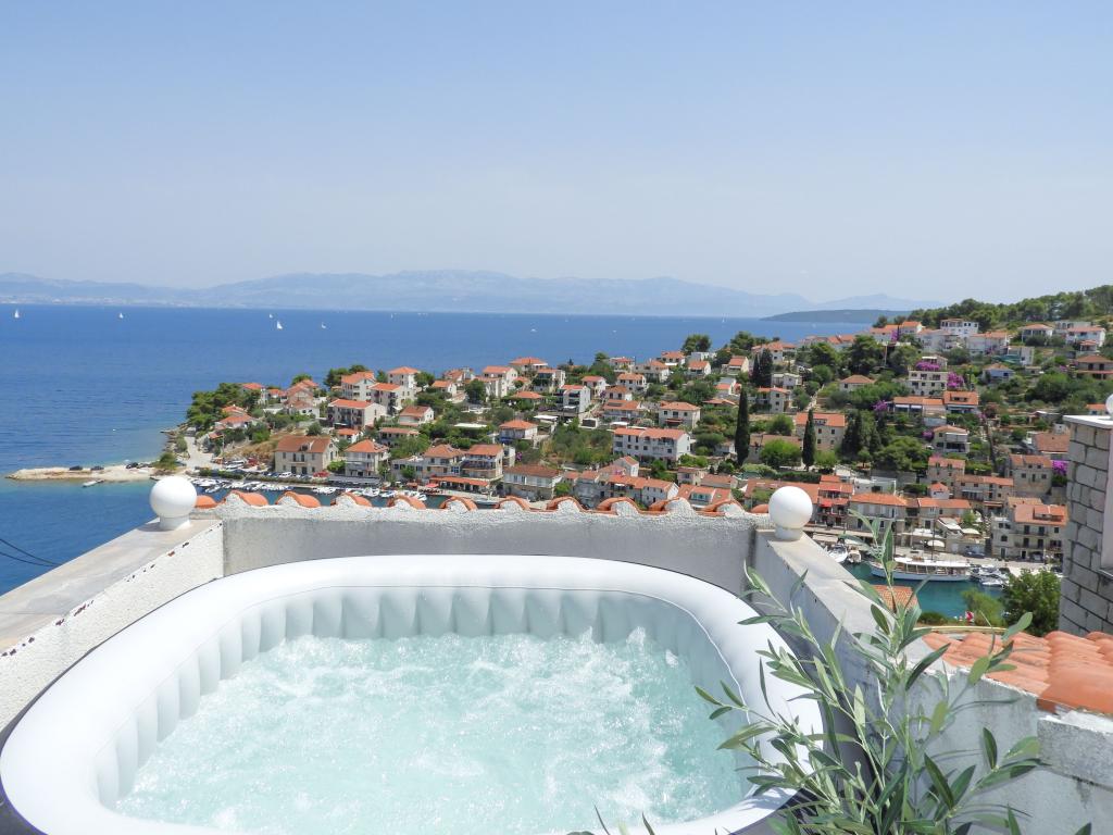 Kamena kuća IVO nalazi se u uređenom masliniku, na vidikovcu, iznad mjesta Stomorska. Iz kuće IVO se pruža izuzetan pogled na uvale, plaže, mjesto i luku Stomorska, na panoramu i akvatorij grada Splita i njegovu okolicu, te na dijelove otoka Brača i Čiova. Najznačajnije osobine kuće su jedinstven pogled, prostranost i mir. Najbliži susjedi su udaljeni 30 m. Kuća je cestom udaljena 800m od centra mjesta Stomorska, a pješke 400m. U ponudi su 2 apartmana: - apartman Sunce (2 osobe, jacuzzi, 72m2) - apartman MORE (4 osobe, jacuzzi, 88m2). Apartmani se nalaze svaki na svom katu. Postoji i mogućnost najma obaju apartmana (6 osoba). Gostima obaju apartmana besplatno su na raspolaganju: - osigurana parking mjesta za 3 vozila - kameni roštilj sa stolom u vrtu - vanjski tuš - balotana Postoji mogućnost usluge strojnog pranja rublja (10 €/po pranju) i/ili usluge strojnog pranja posuđa (5 €/po pranju). Domaćini su Vam u svakom trenutku rado na raspolaganju u vezi bilo kakvih upita.