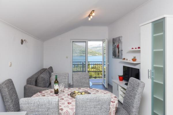 Apartmani su smješteni u obiteljskoj kući u mjestu uz more Malo Selo koje je dio naselja Hodilje na obali Malostonskog zaljeva. Mjesto je udaljeno od povijesnog grada Stona 3 km i svega koja minuta hoda do mora. Apartmani se sastoje od spavaće sobe, kupaonice i kuhinje. Apartman 1 također ima i dnevni boravak u kojem se nalazi kauč s mogućnošću razvlačenja. Sve sobe imaju bračni krevet, dok se u apartmanu 2 nalazi još jedan pomoćni ležaj za jednu osobu. S balkona apartmana 1 i 2 se pruža prekrasan pogled na Malostonski zaljev, uzgajalište kamenica i dagnji.