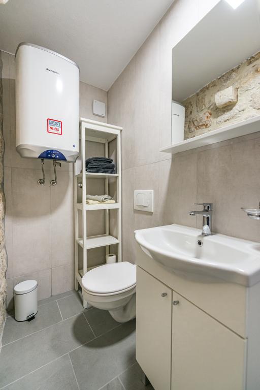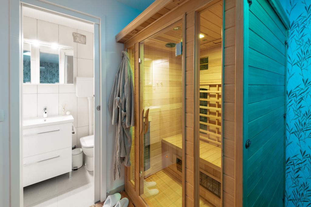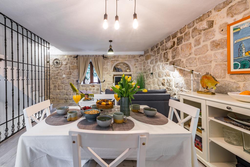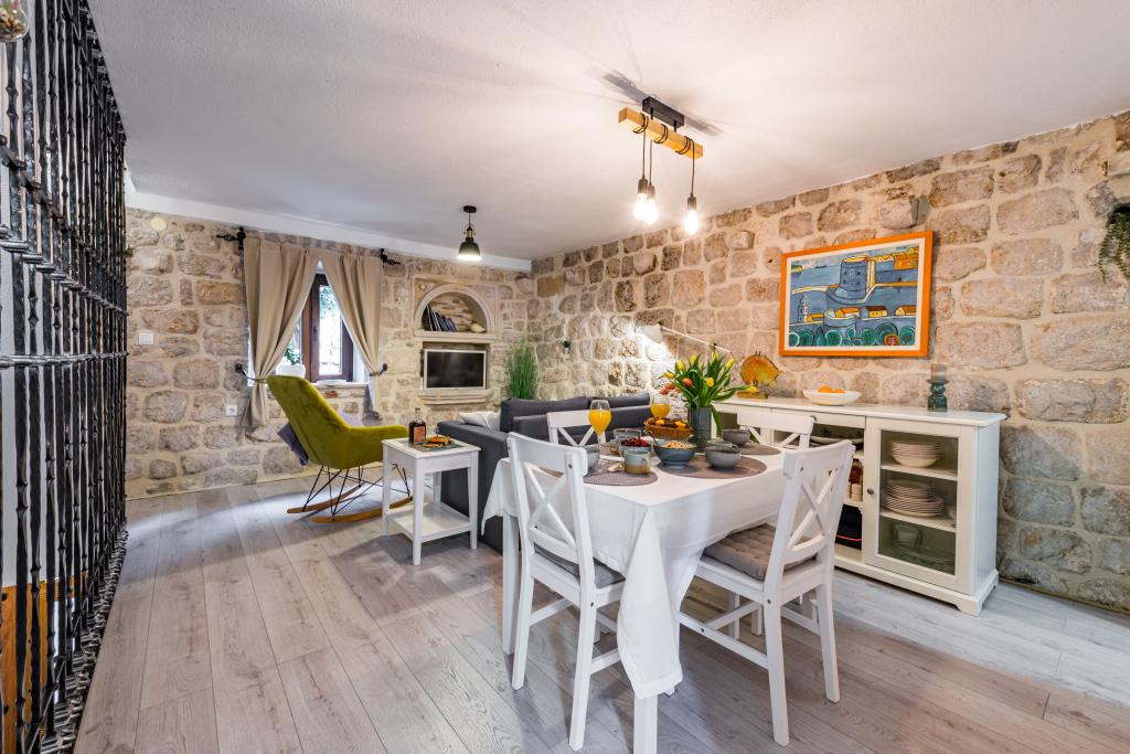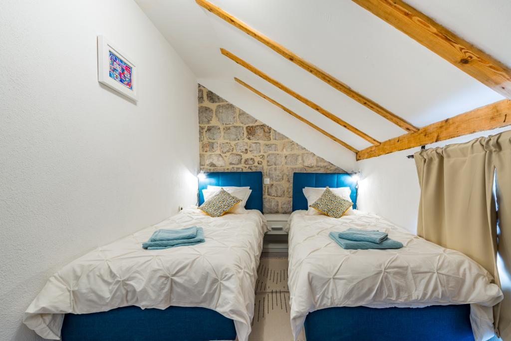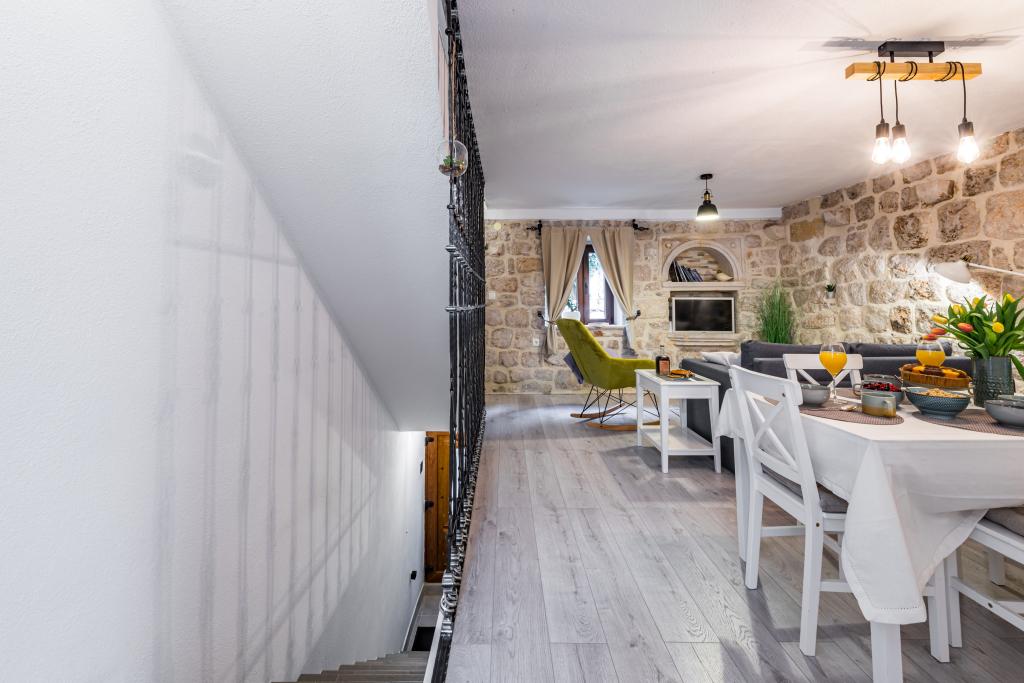 Ova prekrasno uređena rustikalna tradicionalna vila nedavno je renovirana, ima privatni ulaz i prostire se na 100 četvornih metara stambenog prostora samo za vašu privatnu upotrebu, može primiti 4 osobe u sobama i jednu osobu na pomoćnom krevetu u dnevnom boravku U prizemlju vam je na raspolaganju wellness centar koji uključuje fitness sobu / teretanu, infracrvenu saunu i jacuzzi / hidromasažnu kadu za vaše potpuno opuštanje. Kupaonica je pored teretane. Na prvom katu nalazi se dnevni boravak sa Smart TV-om ravnog ekrana (+ maxTv stream kanali), blagovaonicu, potpuno opremljenu kuhinju i WC. Drugi kat se sastoji od 1 kupaonice i 2 spavaće sobe: Spavaća soba 1 – Dva odvojena kreveta Spavaća soba 2 – Dva odvojena kreveta - Kupaonica sadrži perilicu i sušilicu rublja - Pegla, daska za glačanje - Klima uređaj u dnevnom boravku/blagovaonici, svakoj spavaćoj sobi i teretani/sali za fitness - Kupaonice, fitness/teretana i sauna/jacuzzi prostor su opremljeni podnim grijanjem