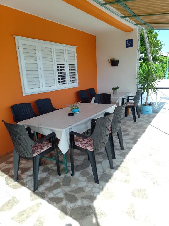 Obiteljska kuća u kategoriji Objekt uz plažu,20 m od mora,Sike.Ima više smještajnih jedinica,soba,tako da će tijekom vašeg boravka vjerojatno boraviti i drugi gosti.Domaćin boravi u kući.Gosti koriste komplet opremljenu zajedničku kuhinju, (dva velika hladnjaka,mikrovalna,kuhalo za vodu) ,dnevni boravak s TV,dvije velike terase s pogledom na Pelješac,Korčulu.Također pogled na vrt,dvorište.
