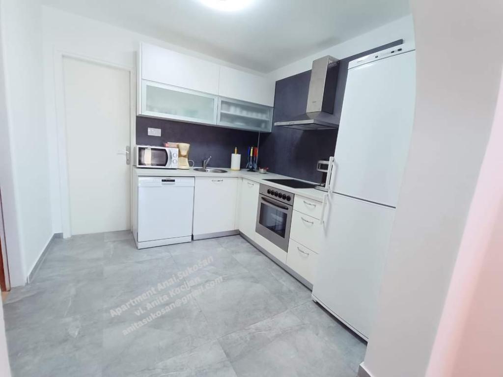 Apartman ANAI / privatni bazen / Nalazimo se u Sukošanu - 12 km od Zadra Apartman je jedini apartman za najam/prizemlje kuće dvije spavaće sobe (soba 1-bračni krevet kutna garnitura, soba 2 - bračni krevet kuhinja (perilica posuđa, mikrovalna pećnica, pećnica, keramička ploča za kuhanje, hladnjak), kupaonica (perilica rublja) veliki dnevni boravak (dvije sofe, TV, trpezarijski stol) natkrivena terasa. Na terasi se nalazi i roštilj. Udaljenost od šljunčane plaže Zlatna luka: 800-900m Udaljenost od plaže Dječji raj: pijesak u moru, 1200-1500 m Udaljenost od stjenovite plaže Tustica u borovoj šumi: 3000 m U blizini centra, pekare, trgovine, ambulante, pošte, kafići, restorani. 800-1000m Apartman je klimatiziran, wifi, ispred apartmana su dva parkirna mjesta. Bazen je samo za goste apartmana ANAI.