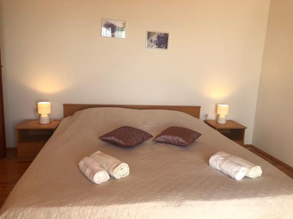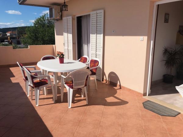 Tip objekta - obiteljska kuća. Nalazi se u mirnom predjelu mjesta Sukošan. Udaljenost od plaže 900 metara i od centra je 50 metara. Apartman ima svoj poseban ulaz i terasu te parking koji se nalazi pored kuće. Na raspolaganju Vam je neograničen internet, TV, roštilj i kuhinja sa kompletnim posuđem. Apartman je klimatiziran.