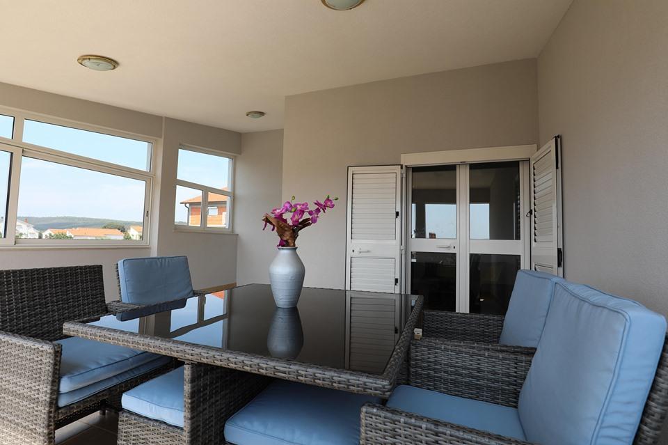 Suvremeno uređeni apartmani u šarmantnom Sukošanu. Apartmani su kompletno opremljeni svim potrebnim elementima za ugodno ljetovanje. Prostrana terasa je savršena za objed u hladu na svježem zraku uz divan pogled na more. Vrt je također opremljen za roštiljanje i dječju igru, i prigodan za obiteljsko druženje i lijepe ljetne uspomene.