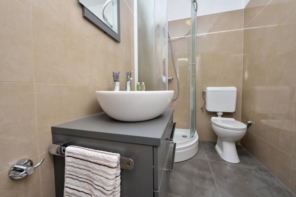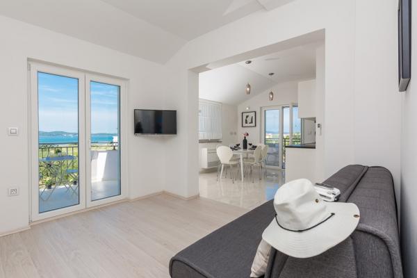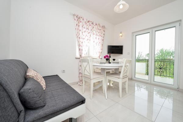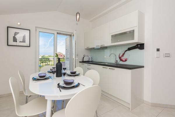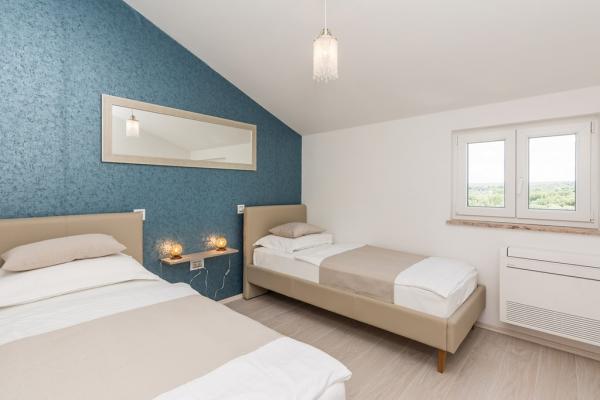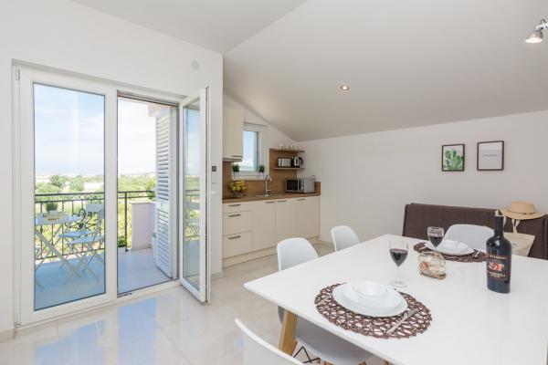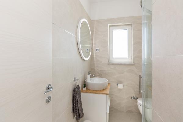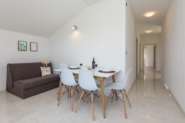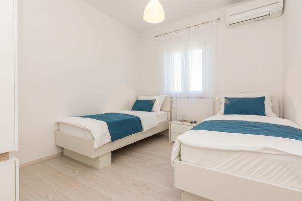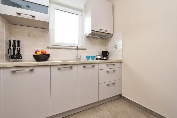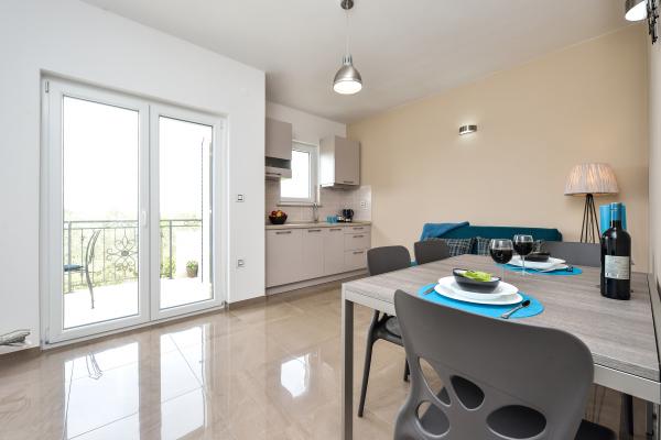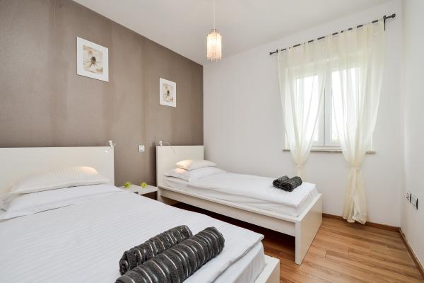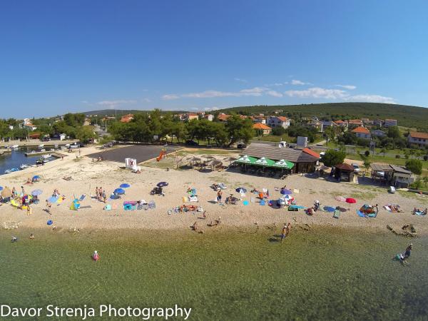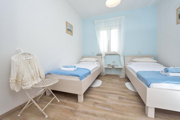Apartman je uređen na moderan način, izuzetno čist i na raspolaganju sa svime što vam u kućanstvu treba, svaka soba ima klima uređaj (to još nigdje nismo imali) domaćini su pripremili sva moguća uputstva da olakšaju boravak u apartmanu, a i zvan njega (npr. Najbliži restorani, trgovine, mjesta koja možete posjetiti, cjenici za dostavu hrane....) da spomenem domaću travaricu koju možete kupiti kod njih po pristupačnoj cijeni, a odličnu. Na svakom katu ima kutak gdje su posložene knjige, slikovnice, puzzle, igre za djecu... Plaža je udaljena kojih 150 m od apartmana. Domaćini Kristina i Vinko su jako pristupačni, ljubazni, spremni za odgovor na svako pitanje. Eto, šaljemo im pozdrave i sve najbolje!! Sanja, Damir i Mia