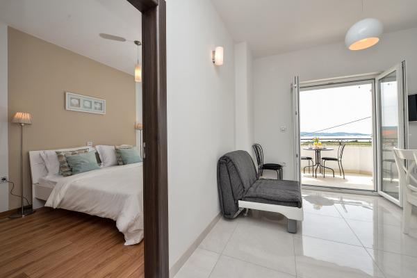 Sviđa nam se ovdje. Sve je vrlo čisto i kvalitetno. Prekrasan pogled, a more je na dohvat ruke. Ovdje se osjećate dobrodošlo, zahvaljujući vrlo ljubaznim domaćinima. Vrlo korisno i nijedan problem ne prolazi neliječen. Zapravo bismo htjeli ostati ovdje. Ovdje možete dati svoju preporuku bez grižnje savjesti. Hvala i samo tako nastavi. Pozdrav iz Gornje Bavarske!