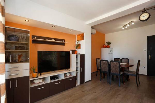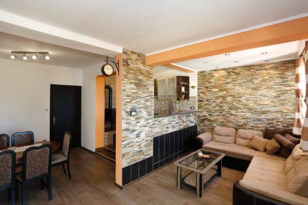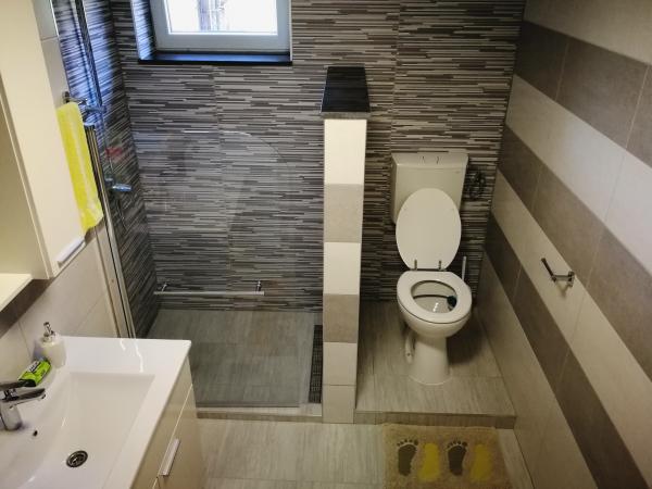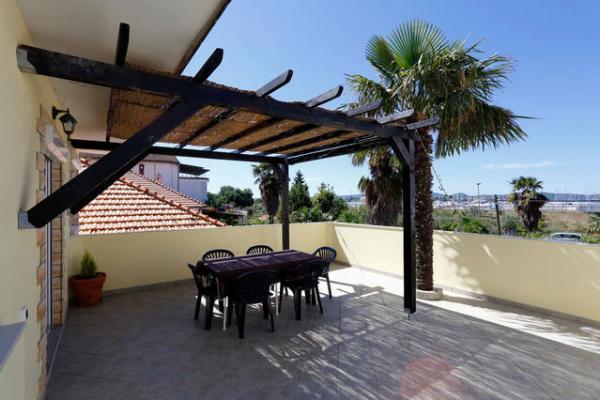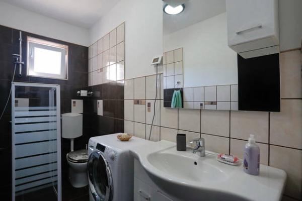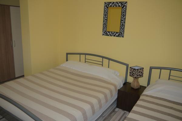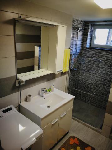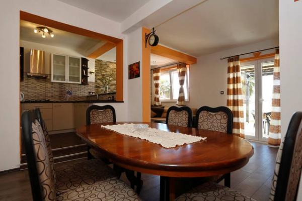 Dobrodošli u Casa di Maria! Nudimo Vam 3 kompletno uređena apartmana. Veliki apartman se nalazi na prvom katu kuće i može primiti max 7 osoba. Sastoji se od dvije sobe, 2 kupatila, hodnika, kuhinje s blagavaonicom te dnevnog boravka i terase. Prva soba ima bračni krevet te krevet za jednu osobu, dok je druga soba opremljena bračnim krevetom. Kuhinja i blagavavaonica su prostrane te spojene s dnevnim boravkom, gdje je udoban kauč na razvlačenje. Kuhinja je opremljena svim potrebnim kućanskim aparatima koji omogućuju udoban boravak. Terasa je velika, te sa preko 35 m2 omogućuju opuštanje u večernjim satima ili sunčanje na ležaljkama preko dana. Studio apartman se nalazi na prizemlju i može primiti max 3 osobe. Ima kuhinju, kupaonicu i dnevni boravak, koji je ujedno i mjesto za spavanje. Ima bračni krevet te sofu na razvlačenje. Ugodan je to prostor u stražnjem dijelu kuće tako da imate osiguranu privatnost. Svi apartmani imaju osiguran parking i mogućnost korištenja roštilja.