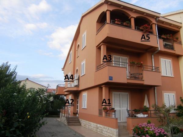 Kompletno uređeni i opremljeni apartmani u mirnom dijelu Sukošana, 90 m iznad glavne plaže i 300m od centra mjesta. Kuća se sastoji od 5 apartmana A1(3+1, 45m2); A2(3+1, 45m2); A3(3+1, 45m2); A4(3+1, 45m2) i A5(4+2, 75m2) s balkonima, privatnim ograđenim parkiralištem i grilom u dvorištu namjenjenim za korisnike apartmana. Svaki apartman ima klima uređaj, LED SATTV, hladnjak s ledenicom, besplatni Wi-Fi internet, mikrovalnu pećnicu, kuhalo za vodu, kuhalo za filter kavu, fen itd. , , , , ,