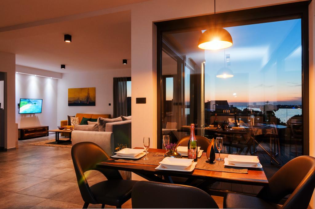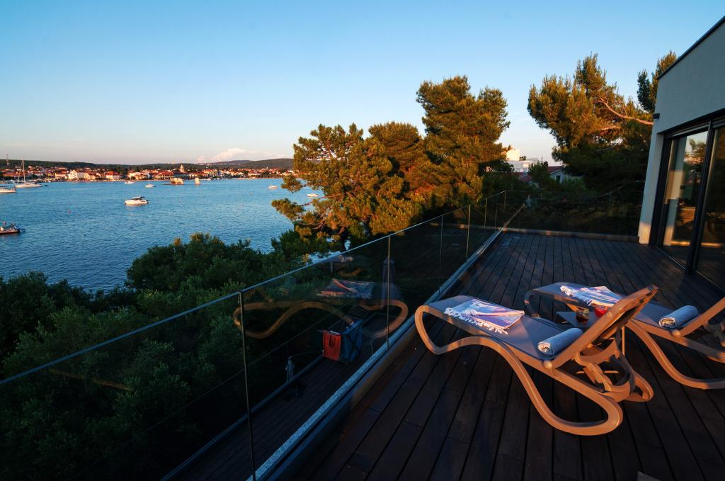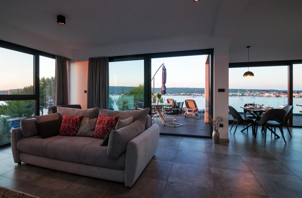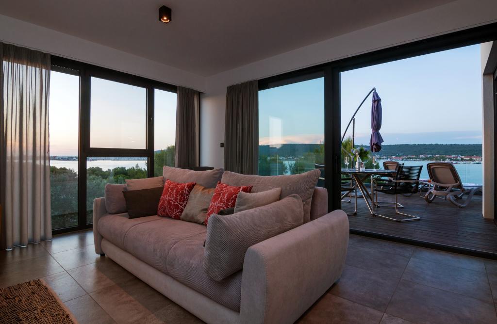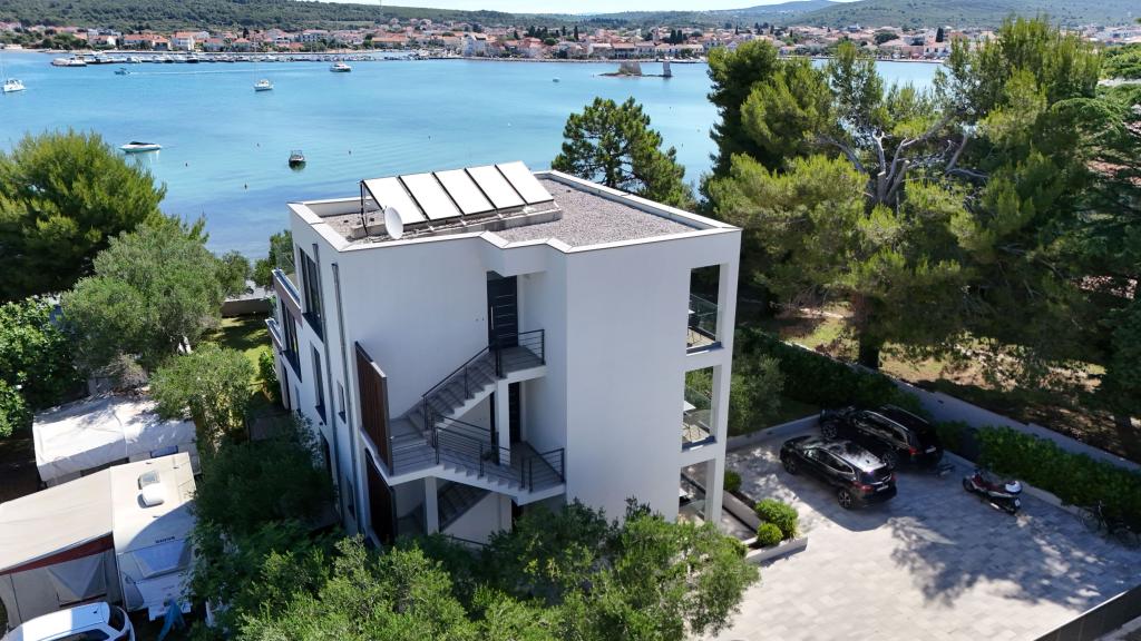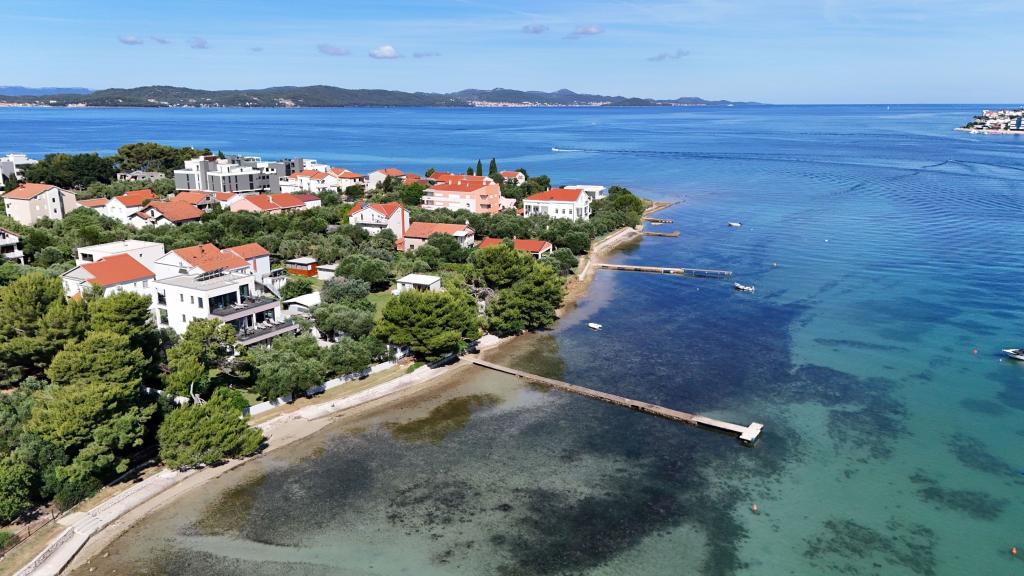 Vila Punta Aqua je luksuzno uređena u modernom i funkcionalnom stilu, idealna za uživanje u hladovini maslina i u moru s predivnim pješčanim dnom. Udaljena je samo nekoliko metara od plaže. Podijeljena je na 3 kata. U prizemlju se nalazi trosobni apartman s 3 kupaonice i dodatnim wc-om te velikom terasom od 35m2 koja se nastavlja na njegovan vrt i plažu u produžetku. Na prvom katu je dvosobni apartman s 2 kupaonice i dodatnim wc-om. Veliki balkon od 37m2 je idealan za opuštanje i uživanje u predivnom pogledu na more. Na drugom katu se nalazi luksuzni i romantični jednosobni apartman s kupanicom i dodatnim wc-om. Apartman ima prostrani balkon s kojeg se pruža pogled na more, marinu i mjesto Sukosan. Ova vila je idealna za uživanje, odmor i druženje uz predivan pogled na more.