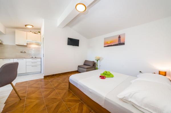 Boravili smo ovdje 5 dana i zadovoljni smo smještajem, uslugom i ljubaznošću vlasnice. Plaža je preko puta, i sve je u blizini, jako lijepo!