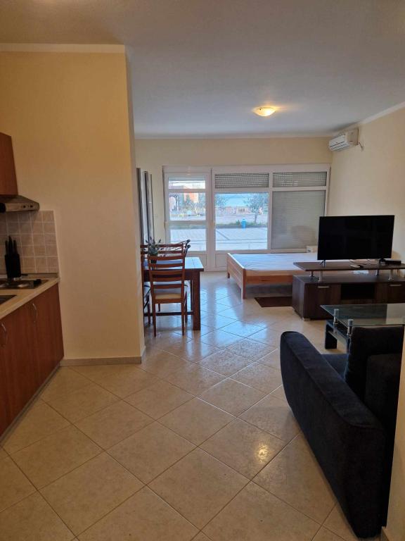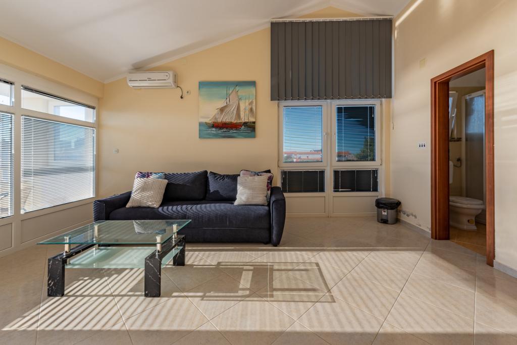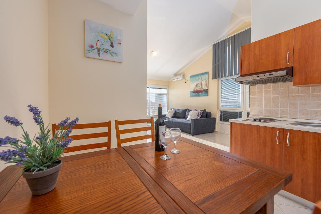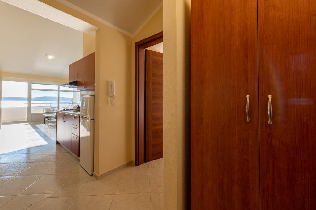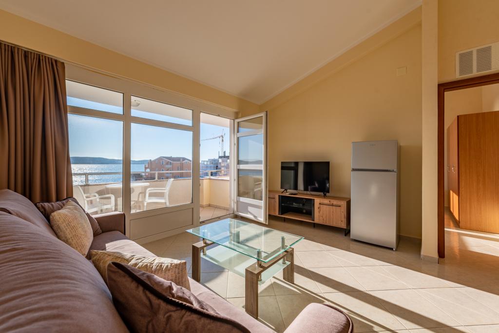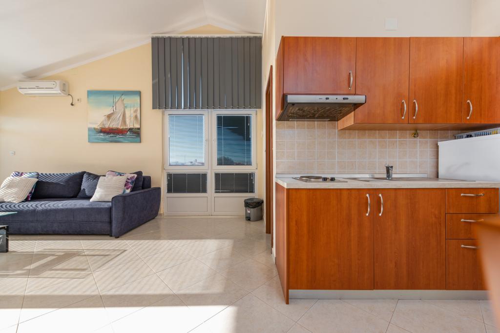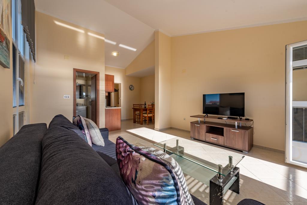 Apartman je dobro opremljen i ima dva balkona s prekrasnim pogledom na more. Klima uređaj omogućuje podešavanje sobne temperature ovisno o vremenu. Lokacija je idealna za obitelji s djecom, gotovo direktno na plaži, ali ipak mirno. U blizini je dječja plaža s pješčanim dnom. Osoblje je ljubazno i uslužno.