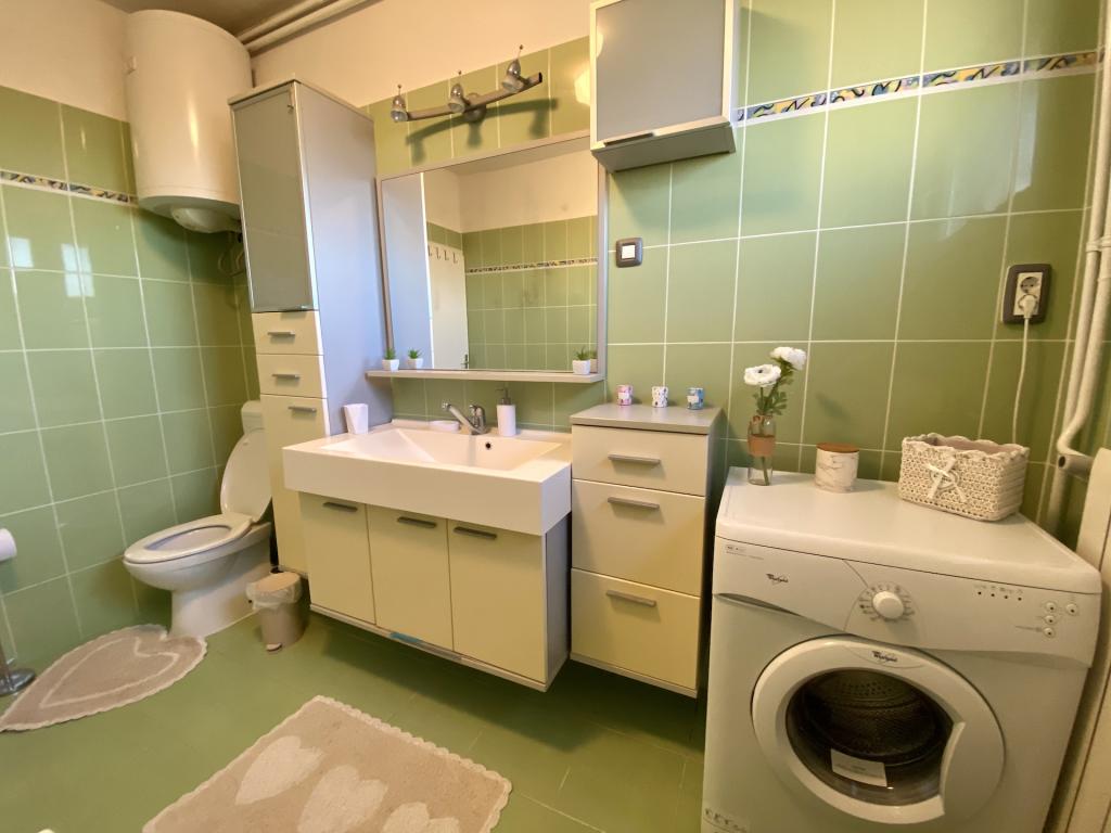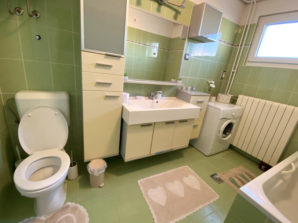 Prostran, čist, dobro opremljen i namješten stan. Udobni kreveti. Kuhinja dobro opremljena. 2 kupaonice i 2 toaleta. Kod kuće smo se osjećali jako dobro. Pogodno za obitelji s malom djecom. Izvrsna lokacija - blizina plaže, čisto more s postupnim ulaskom. U neposrednoj blizini trgovina, pekara, ukusni restoran, bar. Poštovani vlasnici. Hvala na lijepom odmoru.
