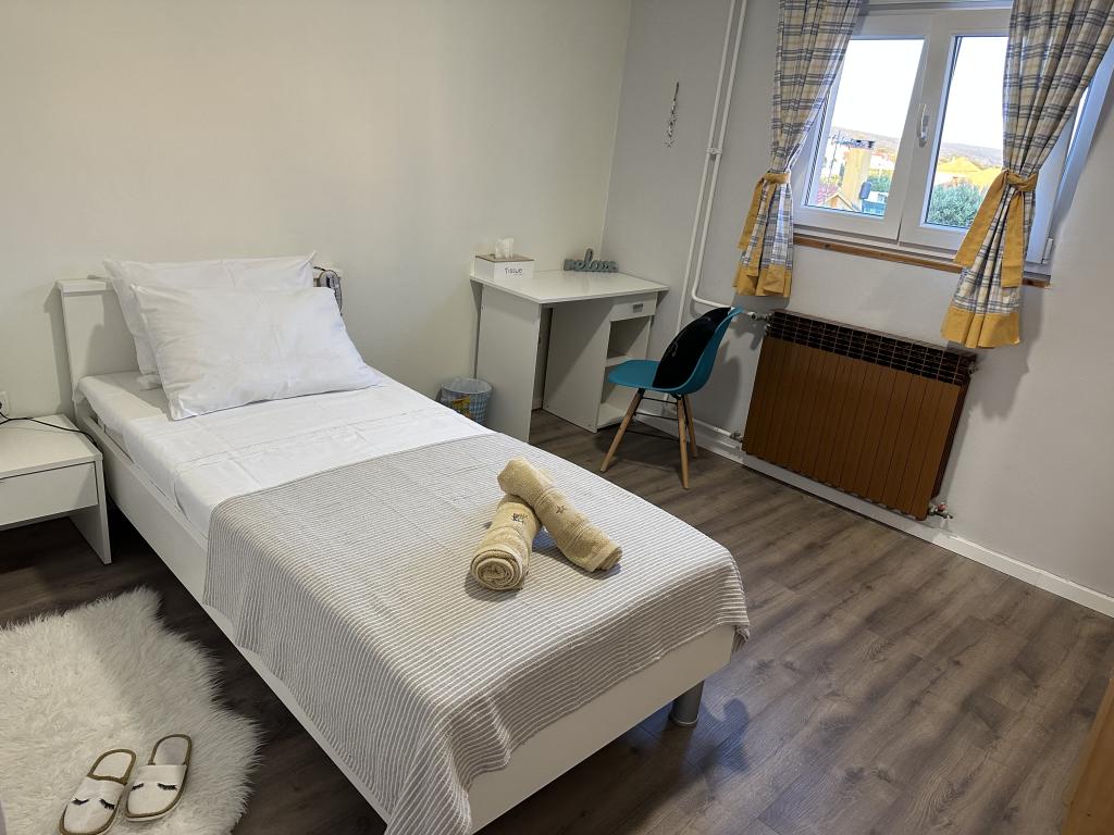 Stan je odličan kako je opisano i na slikama. Čisto, prostrano, velika terasa, vrt. Mirna lokacija. Sve što trebate nalazi se na nekoliko koraka. Trgovina, pekara, restoran, bar, plaza. Odlično smo se proveli. Hvala Korina
