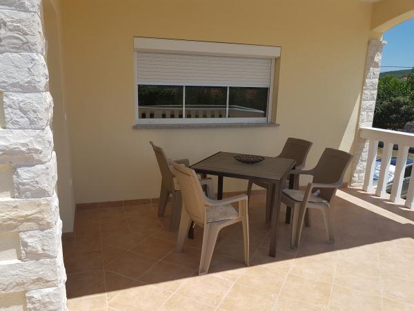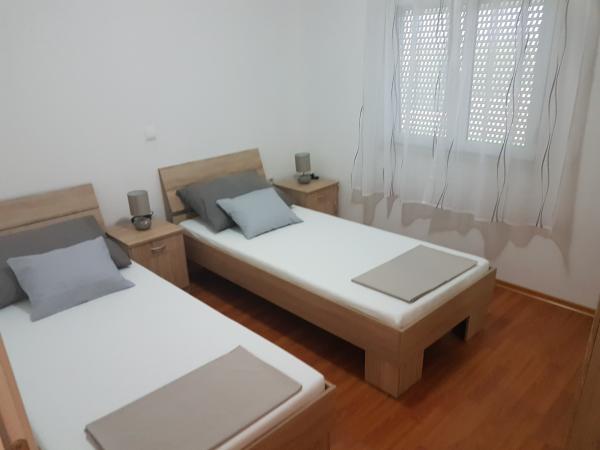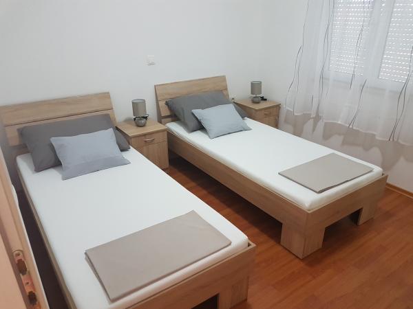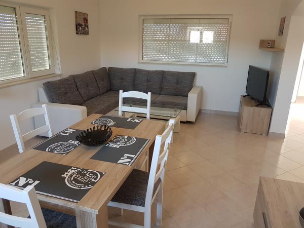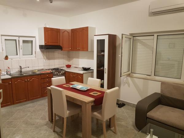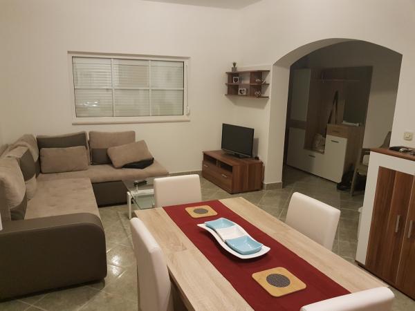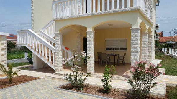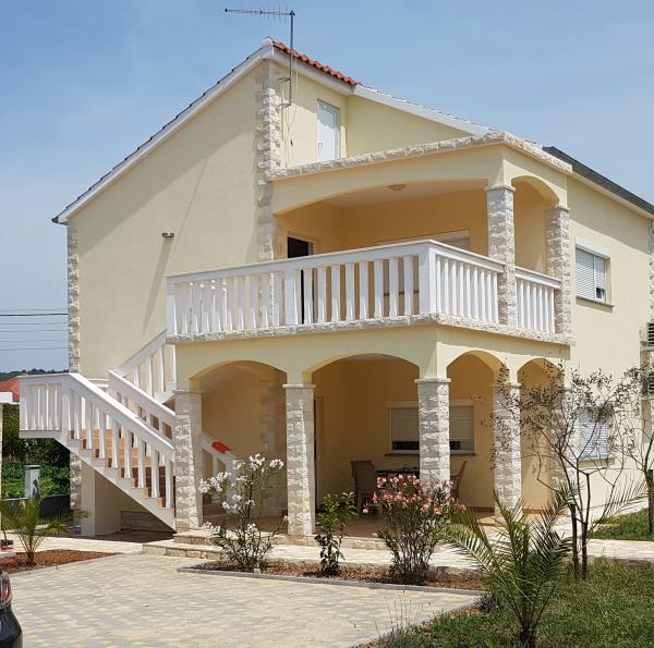 Kuća sa dva kompletno i suvremeno opremljena apartmana u mirnom predjelu Sukošana. Objekt se nalazi 5 minuta hoda do centra te 10 minuta hoda do plaže. Svaki apartman je površine 75 m2, sastoji se od dnevne sobe, kuhinje, dvije spavaće sobe, kupaone i velike terase. U pomoćnom objektu mogućnost korištenja roštilja. Parkirna mjesta osigurana u dvorištu.