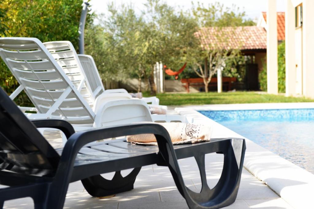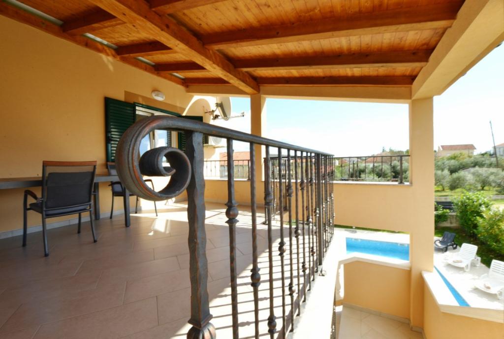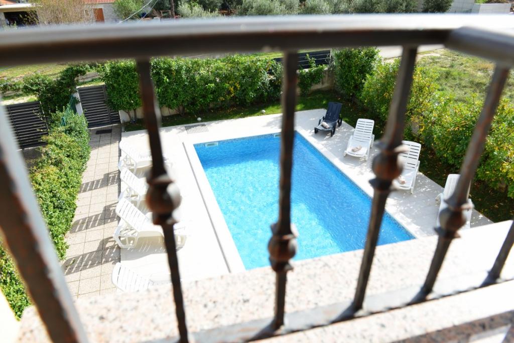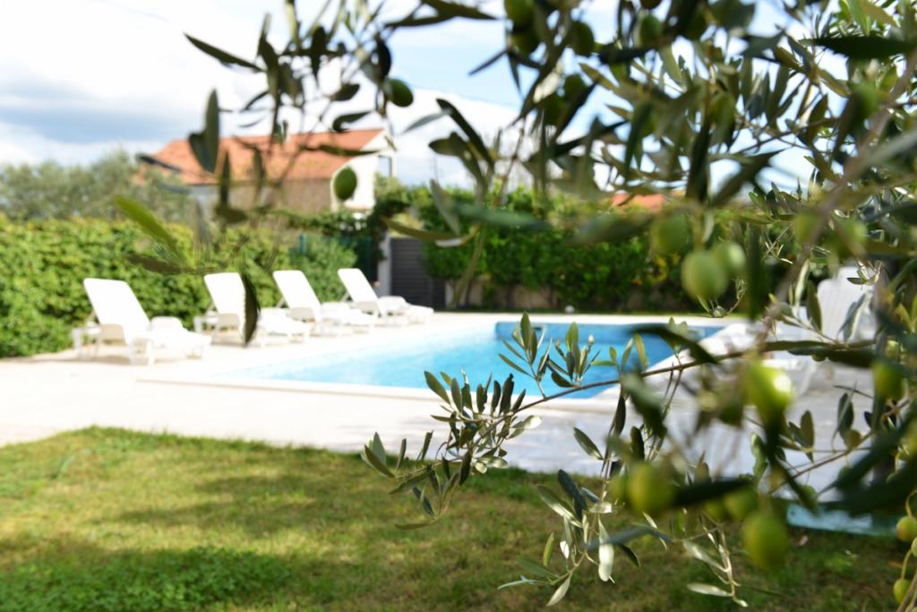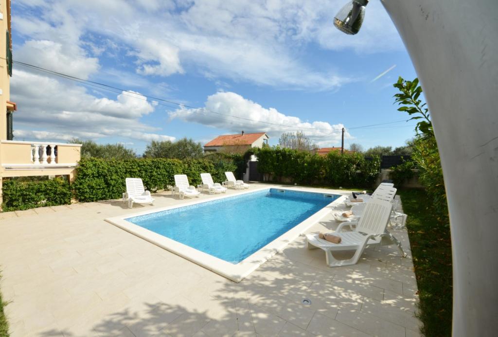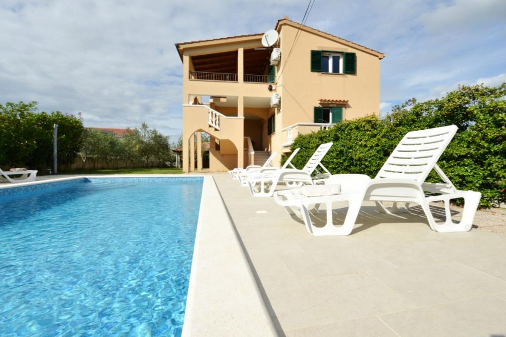 Kompletno i suvremeno opremljena villa za obiteljski odmor s bazenom dimenzija 8 x 4 metra u zaleđu Sukošana. Kuća se nalazi u vrlo skrovitom i mirnom mjestu udaljena 4km od plaže i 15km od Zadra s kojim je povezana brzom cestom(10min). Objekt je dvokatnica koja se sastoji od jedne trokrevetne i tri dvokrevetne sobe, dva wc-a, dva dnevna boravka i dvije kuhinje, dva balkona te posebnom kućicom za roštilj, te nadstrešnicom ispred. Iz objekta se pruža prekrasan pogled na Velebit i ravnokotarski kraj, a na samo 4 min hoda je udaljena pozicija( n/v 100m) s koje se pruža panoramski pogled na Sukošan, otoke zadarskog arhipelaga i čudesan zalazak sunca. Kuća posjeduje neograničen i besplatan bežični internet, besplatna parkirna mjesta, organsko uzgojeno povrće koje je dostupno gostima. Po dogovoru mogućnost spremanja tradicionalnih dalmatinskih specijaliteta.