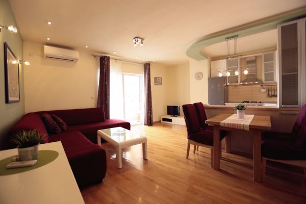 Pročitaj više Smještajne jediniceSmještaj je rezerviran po uplati akontacije. Iznos akontacije je minimalno 25% ukupnog iznosa i uplaćuje se preko računa. Preostali iznos se plaća po dolasku u apartman. Otkazivanje rezervacije moguće je 30 dana prije dana predviđenog dolaska i u tom slučaju, akontacija se vraća. U slučaju nedolaska ili otkazivanja rezervacija manje od 30 dana prije predviđenog dolaska, akontacija se ne vraća. Optimalno vrijeme dolaska je iza 14:00, s tim da je moguće dogovoriti i raniji dolazak. Odlazak je do 10:00, te je također moguće dogovoriti kasni check out! Boravišna pristojba je uključena u cijenu.