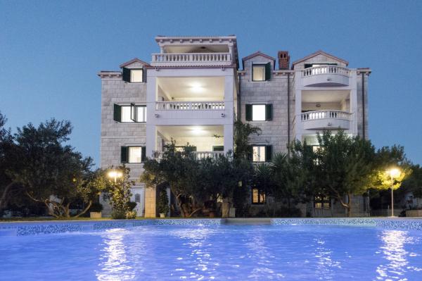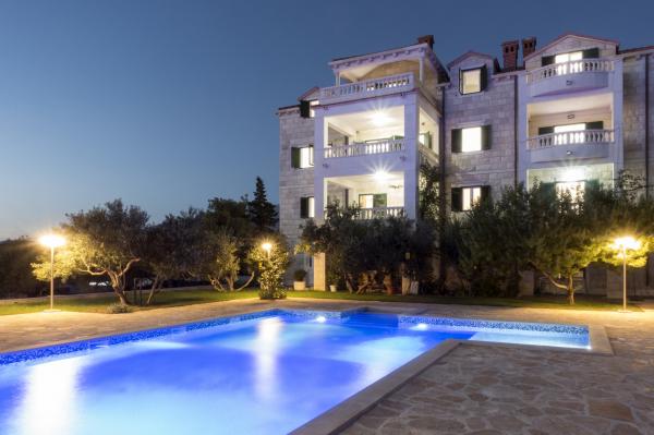 Turistička pristojba je uključena u cijenu.Svi Apartmani imaju kuhinju s blagovaonicom, dnevni boravak s kaučom na razvlačenje, jednu do cetiri kupaonice s tuš kabinom ili kadom ili obadvoje, i wc-om. jednu do tri sobe i vecim dijelom, balkon / terasu. vecina Apartmana ima pogled na bazen, vrt, more i planine. Kuhinja je potpuno opremljena, perilicom suđa, pećnicom, kuhalom za vodu i aparatom za kavu. U kupaonici, sušilom za kosu i sapunom i gelom za tuširanje. Ručnici i posteljina su u cijeni i mijenjaju se jednom u tijeku tjedna. Centar Sumartin, s restoranima, kafićima, barovima, trgovinama, supermarketima i trajektnom lukom, se nalaze na 400m. Najbliža plaža udaljena je samo 300m. Do luke i plaže svega 5 minuta, a istodobno je to i centra grada.