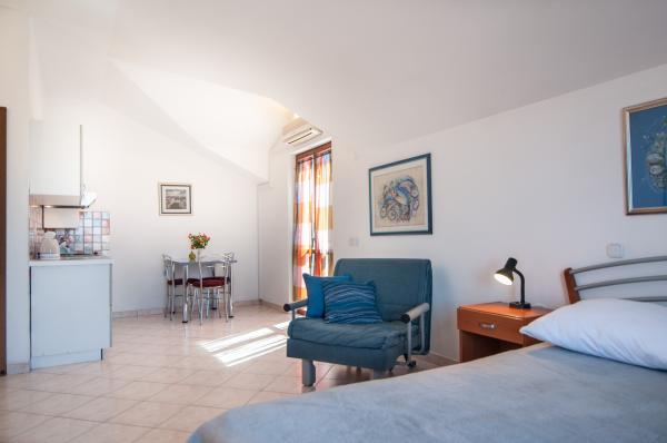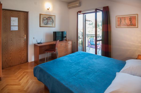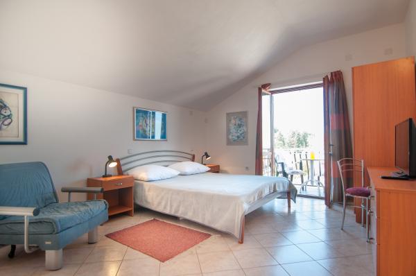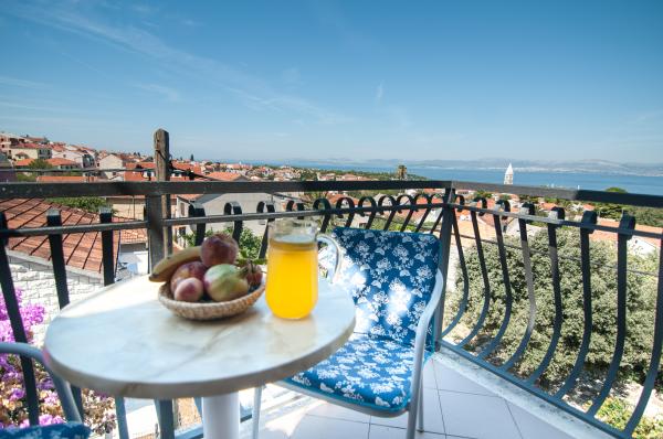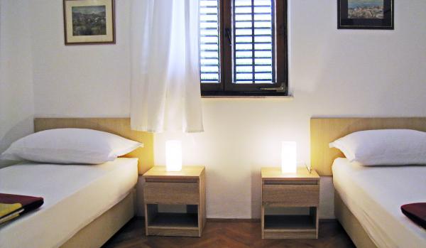 Iznajmljujemo četiri smještajne jedinice u obiteljskoj kući pozicioniranoj u jugoistočnom dijelu stare gradske jezgre, u mirnom i atraktivnom predjelu. Fleksibilan raspored i sadržaji omogućuju kombinaciju korištenja smještajnih jedinica. Svi apartmani kao i soba imaju terasu ili balkon s prekrasnim pogledom na grad i more, opremljeni su klima uređajem, satelitskom TV i imaju pristup bežičnom internetu. Gostima je na raspolaganju parkirališni prostor i dvorišni roštilj, a za sigurno spremanje bicikla mogu koristiti garažu u prizemlju objekta, sve bez dodatne naplate. Perilica rublja i oprema za glačanje dostupni su na zahtjev, također bez naplate. Centar grada i plaže udaljeni su 5 do 10 minuta hoda a prodavaonice 3 minute. U obližnjoj borovoj šumici je rekreativna zona opremljena raznim spravama za tjelovježbu.