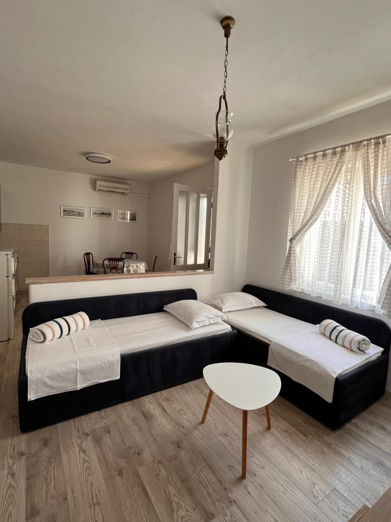 Apartmani se nalaze 300 m od tri najlješe plaže u Supetru. Svaki apartman ima svoje besplatno parking mjesto kao i besplatan internet. Oba apartmana imaju perilicu za rublje i posuđe, te su opremljena i klima uređajima. Nalaze se u prizemlju i imaju svoje vanjsko dvorište sa blagavaonskim stolom. Najbliža samoposluga udaljena je svega 50-tak metara od smještaja. Ublizini se nalaze razni sportski sadržaji.
