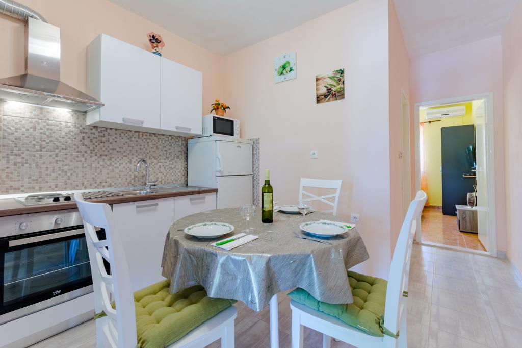 Objekt se nalazi 30m od mora, šljunčane plaže,10 minuta hoda od centra mjesta. Naši apartmani su kompletno opremljeni svim potrepštinama. Ispred objekta se nalazi veliki parking sa prirodnim hladom. U dvorištu se nalazi veliki grill koji je na korištenje svim našim gostima. Svi apartmani imaju svoju terasu. Također su opremljeni sa klima, TV, Wi-fi, SAT. Kućni ljubimci su dobrodošli (nadoplata 7eur/dan). Boravišna pristojba nije uračunata u cijenu. Prilikom rezervacije obavezna akontacija (200eur). Želimo svima ugodan i bezbrižan boravak u našim apartmanima. DOBRODOŠLI I UŽIVAJTE!!!!