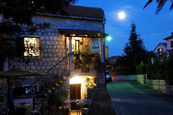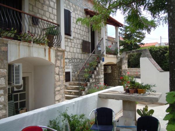 Naši apartmani nalaze se u tradicionalnoj kamenoj kući u samom centru mjesta Supetra. U dvorištu ispred kuće nalazi se privatni parking za automobile naših gostiju. Na terasi ispred kuće gosti imaju mogućnost sjedenja u hladovini uz čašu pića, sa pogledom na more. Također, gosti imaju mogućnost pripreme jela na roštilju koji se nalazi na terasi ispred kuće. Plaža se nalazi odmah ispred kuće, udaljena 20 metara. U blizini se nalazi caffe bar, restorani, pošta, kiosk te ostala razna ponuda. Kuća je smještena na savršenom mjestu za goste koji žele komociju kada su na odmoru. Sve je dostupno na par minuta, bez upotrebe automobila, znači savršeno za obitelji sa malom djecom.