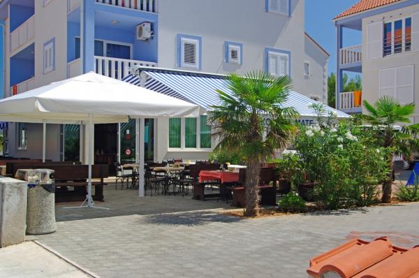 Turistička pristojba je uključena u cijenu.U prizemlju kompleksa se nalazi poznati Restoran-Konoba Mate, koja će vas oduševiti bogatom gastronomskom ponudom koja uključuje riblje specijalitete, jela s roštilja, ražnja i ispod peke. Naše stručno i ljubazno osoblje poslužiti će Vas brzo i diskretno kako bi Vam boravak u našem restoranu ostao u lijepom sjećanju. Naglašavamo da su svi obroci pripremljeni od provjerenih i dnevno svježih namirnica, karakterističnih za ovo podneblje. Osim raznovrsne ponude hrane, za sve ljubitelje dobre kapljice tu je i široki izbor vrhunskih vina iz svih vinorodnih krajeva Hrvatske, s naglaskom na Dalmatinsko područje. Svim gostima smještenim u Aparthotelu Marina odobravamo 10% popusta na usluga A LA CARTE restorana - konobe Mate!
