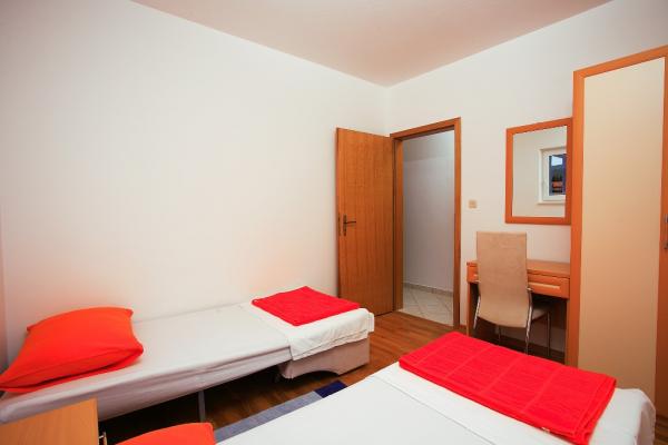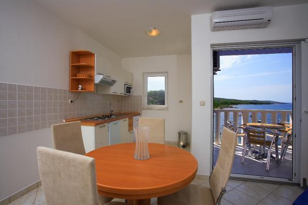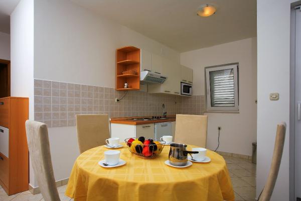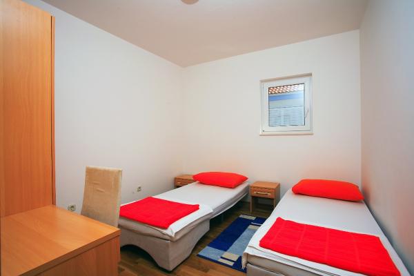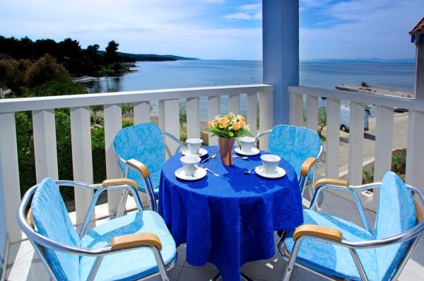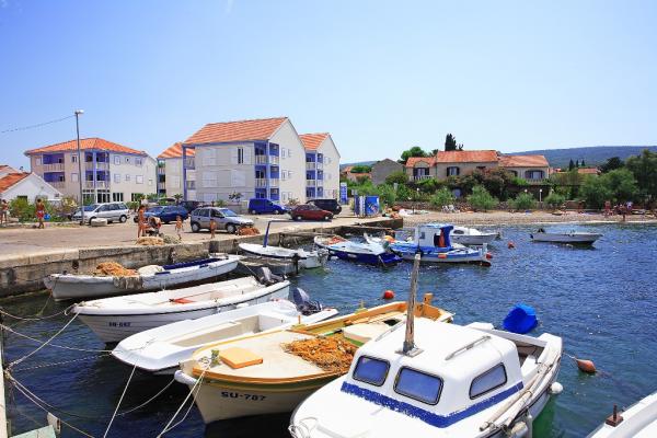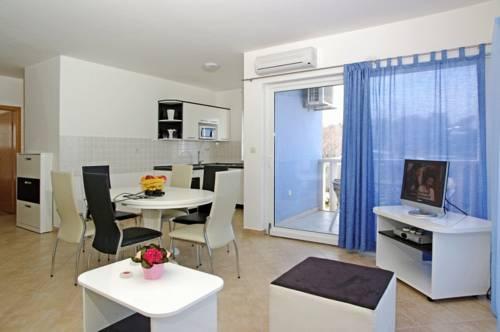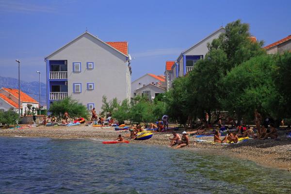 Prostrani i kompletno opremljeni apartmani u prvom redu do mora. Svaki apartman se sastoji od dvije spavaće sobe, dnevne sobe, kuhinje, kupaonice te balkona s pogledom na more. Da bi Vaš boravak učinili što lagodnijim, sve apartmane smo opremili najsuvremenijom opremom, pa nekolicina apartmana sadrži perilicu za suđe, mikrovalnu pećnicu, hladnjak, klima uređaj, te lcd televizor i satelitsku antenu. Također, uz apartman, gosti imaju svoje parkirno mjesto na privatnom čuvanom parkingu.