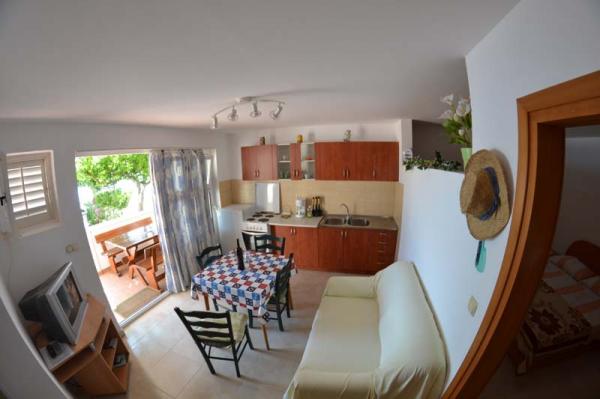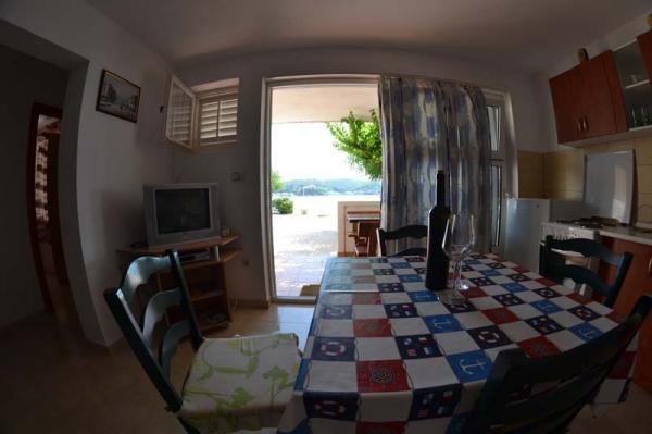 Komletno i suvremeno opremljeni apartman 6 kilometara od centra grada Raba u mirnom predjelu prvi red do mora.