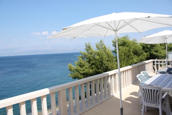 Naša kamena vila, okružena velikim vrtom od 2. 000 m2 zasađenim mediteranskim biljem, nalazi se u Sutivanu, mirnom i živopisnom mjestu na obali otoka Brača, 10 km udaljenom od trajektne luke u Supetru. Vila se nalazi prvi red do mora, pa se iz nje pruža nesmetani pogled na more i Split s okolicom. Predio Sutivana u kojem se nalazi vila poznat je po šljunčanim i pješćanim plažam, a vila je smještena u mirnom i tihom susjedstvu rezidencijalnih vila. Prva kamena plažica nalazi se 20 m ispred kuće, dok su ostale plaže od kuće udaljene 150-200m. Veće plaže su opremljene kabinama za presvlačenje, wc-ima i tuševima, a neke od njih imaju i coctail bar, caffe bar, rent a jet-ski. Apartmani GRMA 1 / 2 / 3 imaju spavaću sobu (2 1 po potrebi dodatni krevet za dijete do 12 god. ), kuhinju te kupatilo, s izlazom na veliku terasu s ležaljkama i suncobranom. Apartman (tipa GRMA 4) ima 2 prostrane spavaće sobe, dnevnu sobu, kuhinju, kupatilo i dodatni wc, te je sa sve cetiri strane okružen terasama.