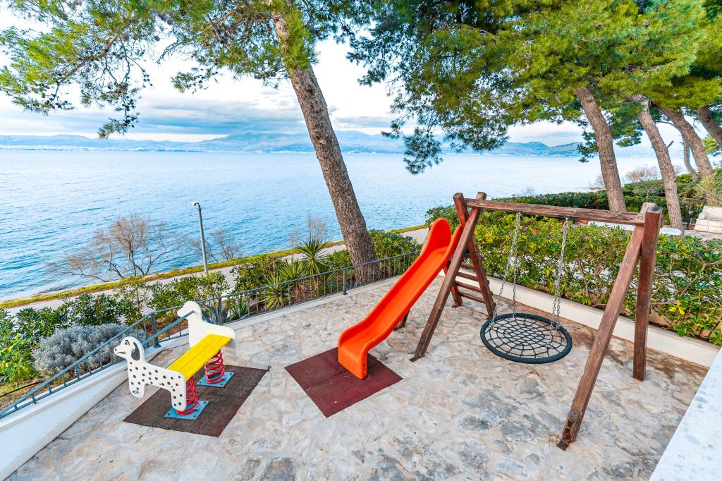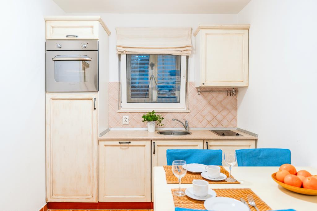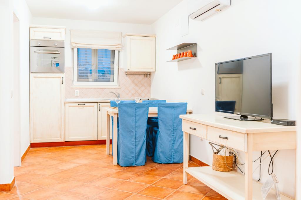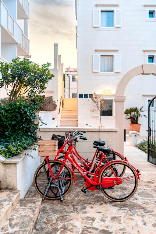 Turistička pristojba nije uključena u cijenu.Svi apartmani su klimatizirani, dodatno opremljeni stropnim ventilatorima u spavaćim sobama, sigurnosnim sefovima, SAT TV, wi fee internetom. U svim apartmanima nalaze se kompletno opremljene kuhinje (keramička ploča, hladnjak, perilica suđa, pećnica i komplet posuđa), kupaonice (sušilo za kosu) te terase (otvoreni pogled na more). Namještaj je od punog drva, posebno izrađen i prilagođen kompletnom ugođaju i ambijentalnom uređenju interijera. U ponudi kuće je korištenje bicikala i vanjsko djećje igralište.