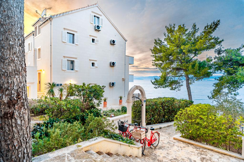 Naći ćete nas u Sutivanu na prekrasnom otoku Braču. Doplovite do nas ako želite: Jadransko more dolazi do našeg praga. Udahnite duboko u našem mediteranskom vrtu, i zaboravite na stres. Pred kućom je dječje igralište, u blizini je plaža s pijeskom, a u okolici gusta borova šuma i beskrajne biciklističke staze kroz maslinike. Posudite naše besplatne bicikle, istražujte uz pomoć karte, i bit će vam jasno zašto nam se većina gostiju vraća svake godine. Pronađite svoj idealan smještaj u našoj luksuznoj vili uz more. Odaberite prostrani apartman ili kompaktni studio, bogato opremljen modernim namještajem. Kuća se nalazi uz samo more, 10-tak minuta šetnjom do centra mjesta, u oazi harmonije zelenila, mora i sunca, okružena njegovanim vrtom i borovima sa direktnim pogledom iz svih apartmana na kristalno čisto more.