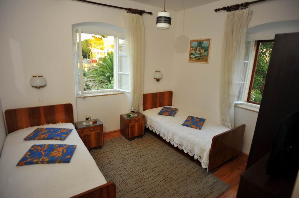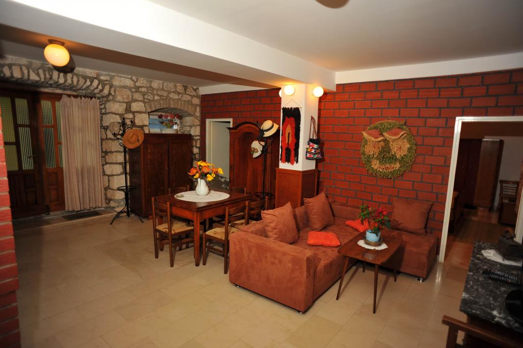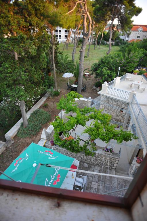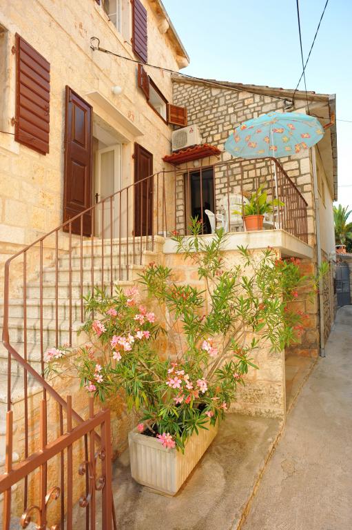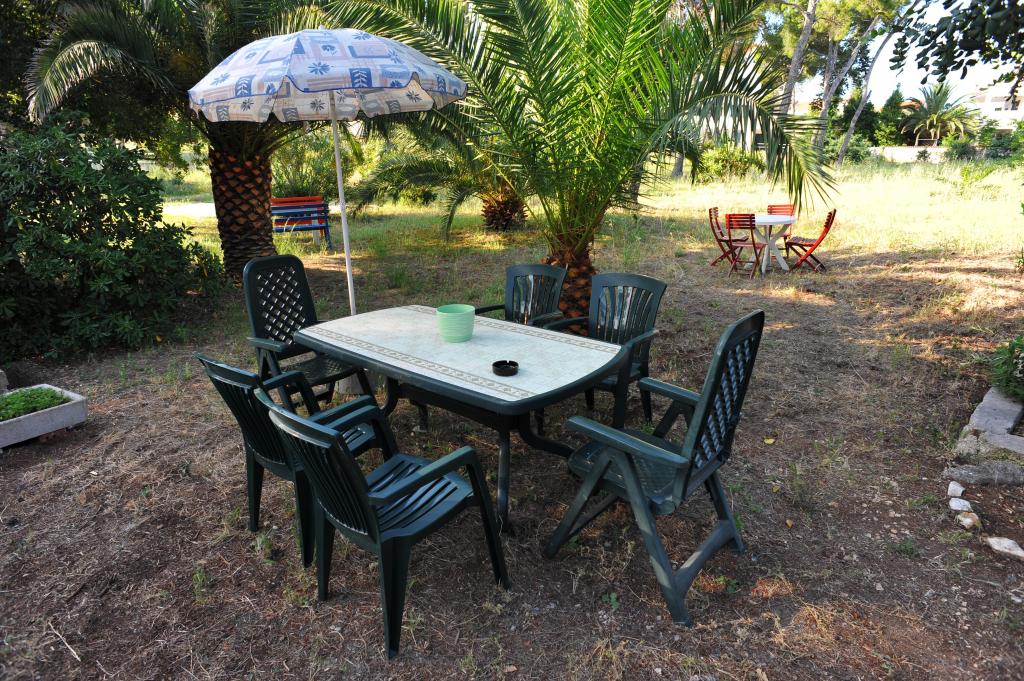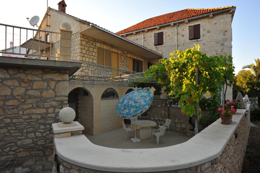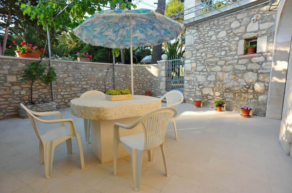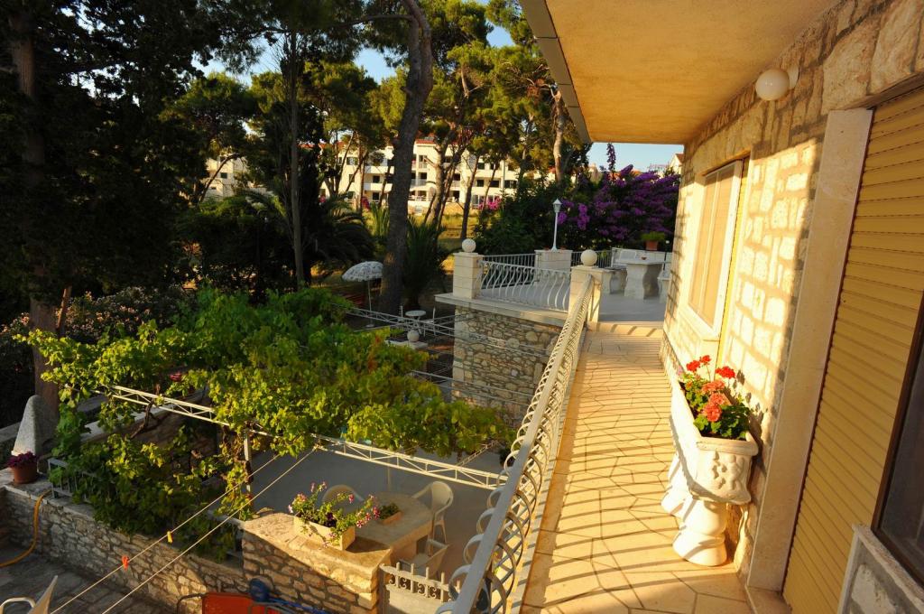 Apartmani se nalaze u obiteljskoj kući koja je smještena prvi red do mora. Kuća se nalazi u mirnom predjelu u centru mjesta, 10m od glavne plaže, sa predivnim pogledom na more. Okružena je velikom okućnicom sa borovima, palmama te ostalim mediteranskim raslinjem. Od zajedničkih sadržaja nudimo roštilj, mašinu za pranje robe, TV satelit, besplatni wifi, internet, parking. U kući se nalaze četiri klimatizirana apartmana.