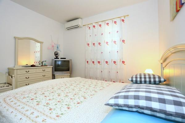 Iznajmljuju se prekrasani komforni apartmani od 100 kvadrata pod imenom Marija i apartman Maša od 58 kvadrata. Apartman Marija ima dve komforne sobe sa bračnim ležajevima,kuhinju kompletno opremljenu i dnevni boravak, terasa u hladovini tijekom dana od 25 kvadrata, klimatiziran, kompletno opremljen, ugodan za opuštanje, mir i odmor. Apartman se nalazi u obiteljskoj kući totalno izdvojen od susjeda sa velikom parcelom vlasnika okruženom zelenilom. Apartman Maša je pogodan za obitelj sa djecom, ima prekrasan pogled na more i ima sve potrebno za kvalitetan odmor.U neposrednoj blizini nalaze se sve potrebne trgovine i ostali sadržaji; ljekarna, banka, pošta, tržnica, pekarnica, caffe bar,restoran, sportski tereni , marina sve u krugu od 100 do 2 km.