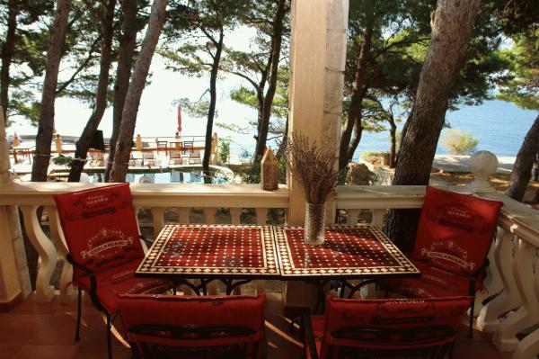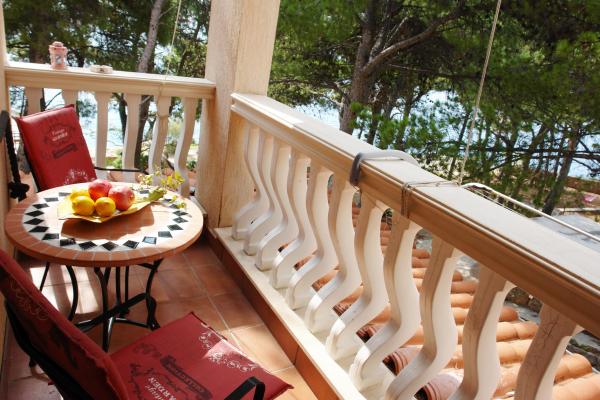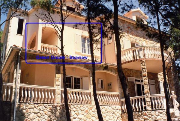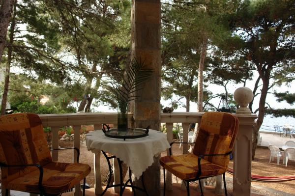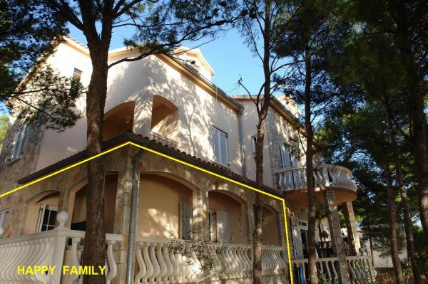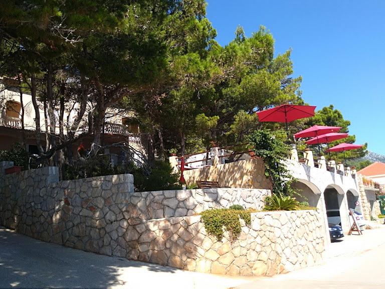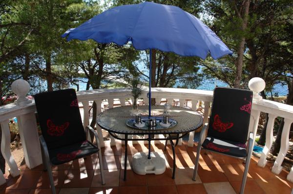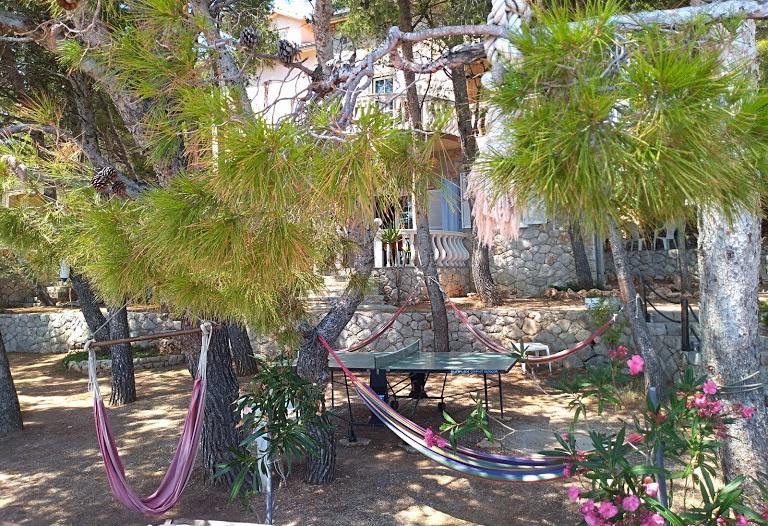 Naša vila se nalazi pokraj mora (cca 30 m) a do nje se stiže asfaltnom cestom koja u blizini i završava. Vila je samostojeća u borovoj šumi na parceli veličine cca 900 m², u podnožju je garaža za šest automobila objekt je priključen na gradski vodovod, trofaznu struju i u dometu je GSM-a, fiksni telefon i besplatni brzi bežični internet. Među borovima su kaskadni platoi za ping-pong i druge aktivnosti. U vrtu je i grill za slobodnu uporabu te brojne sunčaljke i ljuljačke kao i skautske/mornarske mreže, šah, karte...svaka soba ima vlastitu kupaonicu, te svoju loggiu, terasu, ili balkon, sve sobe su s pogledom prema moru u svakoj sobi se nalazi po jedan hladnjak, satelitski TV.