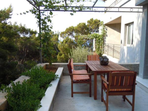 Novosagrađena obiteljska kuća u Svetoj Nedjelji na otoku Hvaru, nalazi se u mirnom predjelu udaljenom 150m od mora okružena prekrasnom borovom šumom s pogledom na more i južni arhipelag otoka Hvara, sa sjeverne strane pogled puca na vrh Svetog Nikole i pitoreskne vinograde u samom podnožju brda. Kuća ima pet prostranih apartmana koji se sastoje od dnevne sobe, kuhinje i spavaćih soba. Apartmani su sa posebnim ulazima, prostranim terasama i balkonima, uz to svaki apartman ima osigurano parkirno mjesto. Kuća još posjeduje vanjski komin koji je na dispoziciji našim gostima. Prekrasan mediteranski ambijent Svete Nedjelje i ljubaznost domaćina garancija su vašeg nezaboravnog odmora.