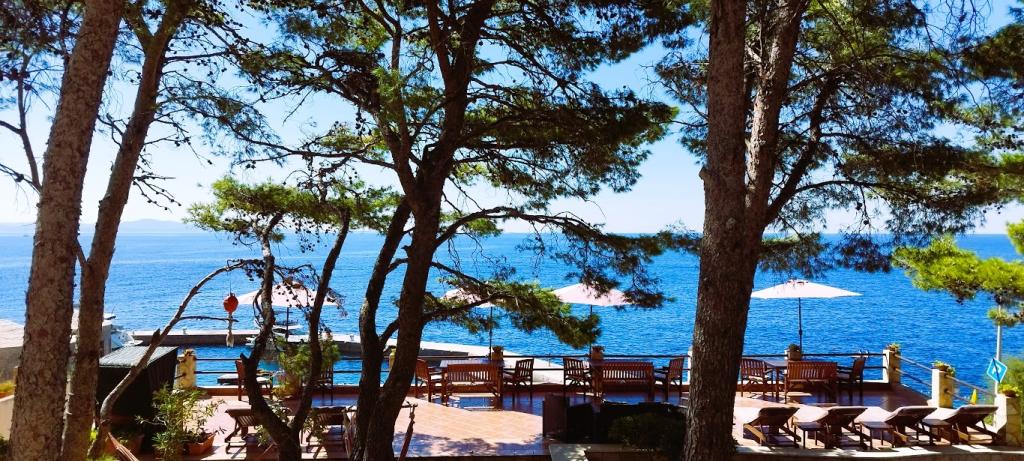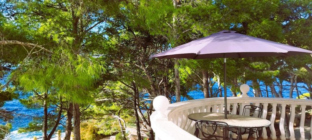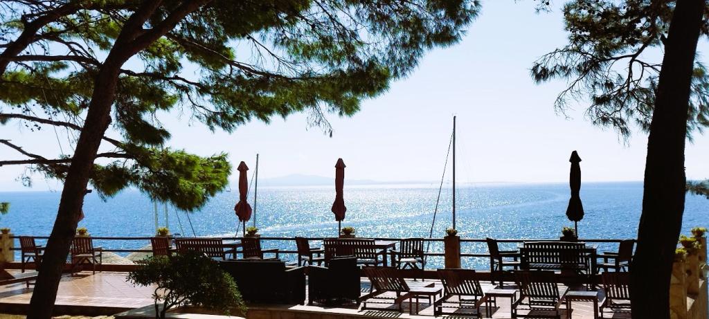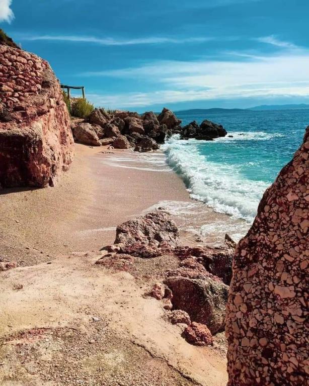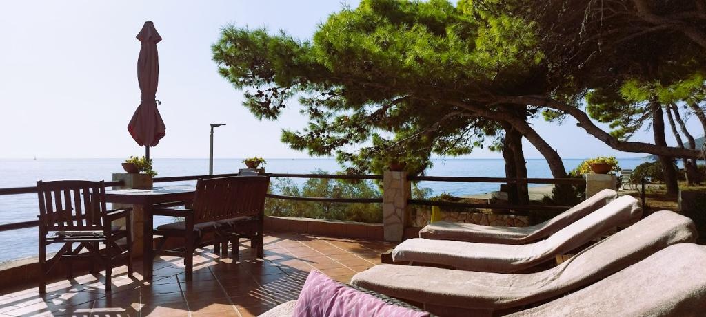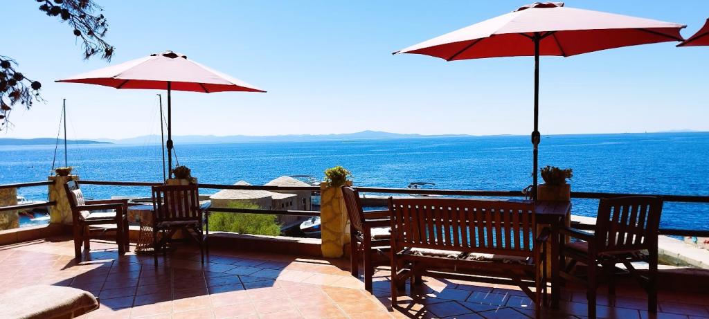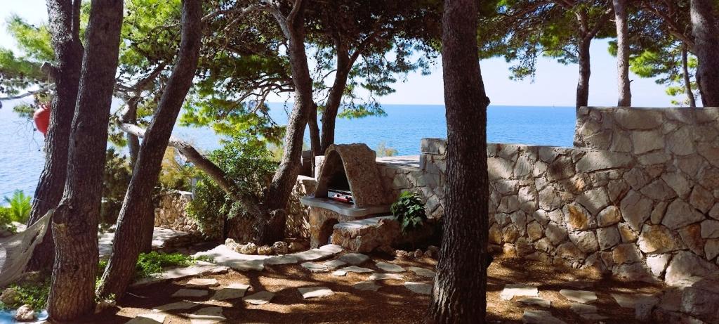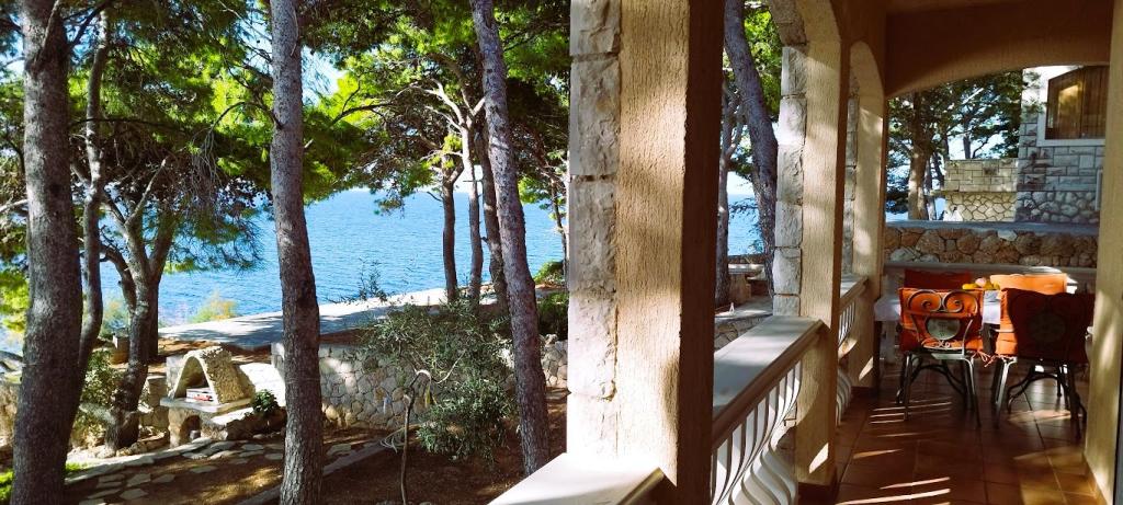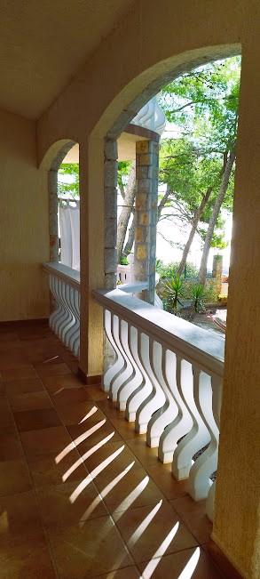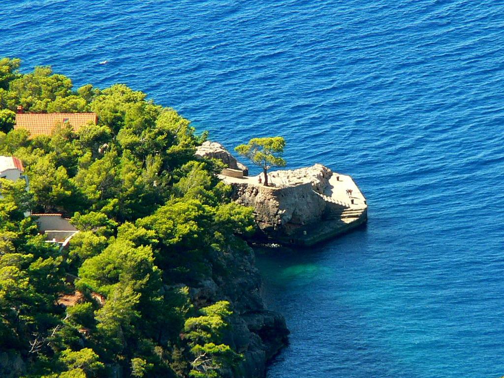 Naša vila se nalazi pokraj mora (cca 30 m) a do nje se stiže asfaltnom cestom koja u blizini i završava. Vila je samostojeća u borovoj šumi na parceli veličine cca 900 m², u podnožju je garaža za šest automobila objekt je priključen na gradski vodovod, trofaznu struju i u dometu je GSM-a, fiksni telefon i besplatni brzi bežični internet. Među borovima su kaskadni platoi za ping-pong i druge aktivnosti. U vrtu je i grill za slobodnu uporabu te brojne sunčaljke i ljuljačke kao i skautske/mornarske mreže, šah, karte...svaka soba ima vlastitu kupaonicu, te svoju loggiu, terasu, ili balkon, sve sobe su s pogledom prema moru u svakoj sobi se nalazi po jedan hladnjak, satelitski TV.