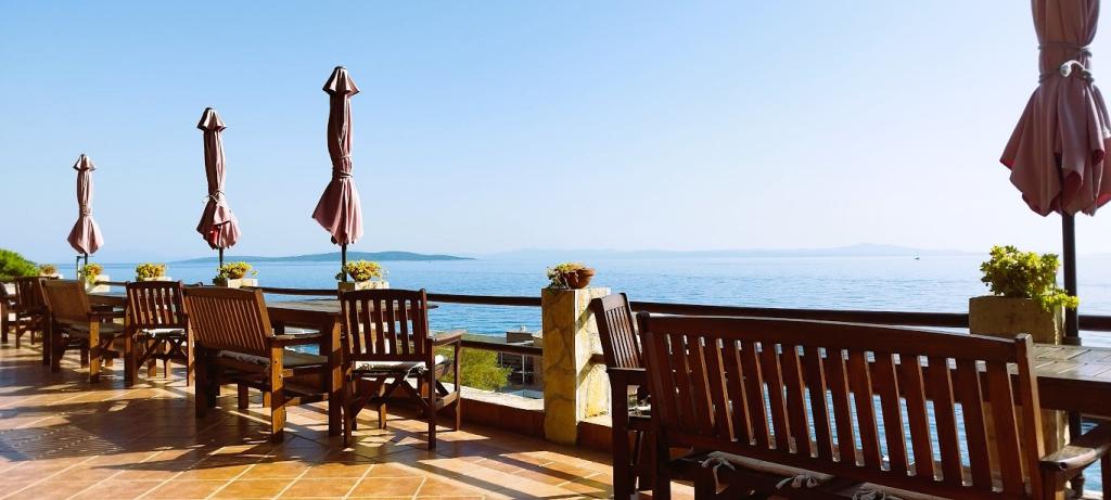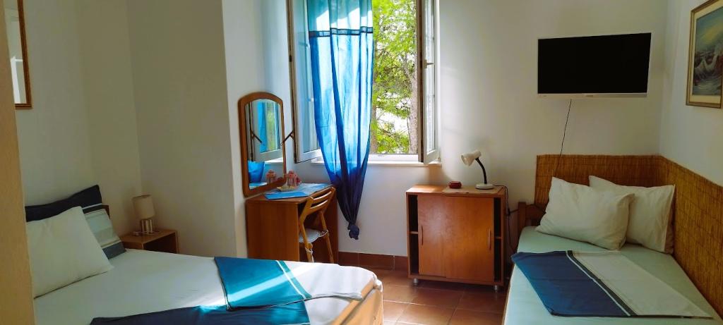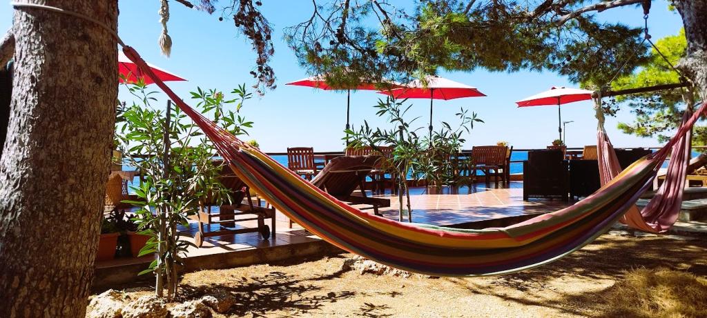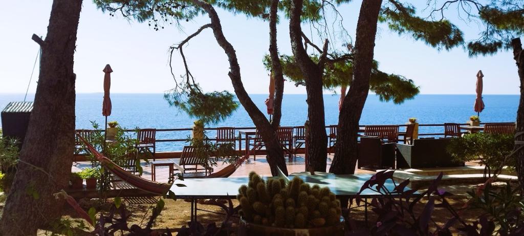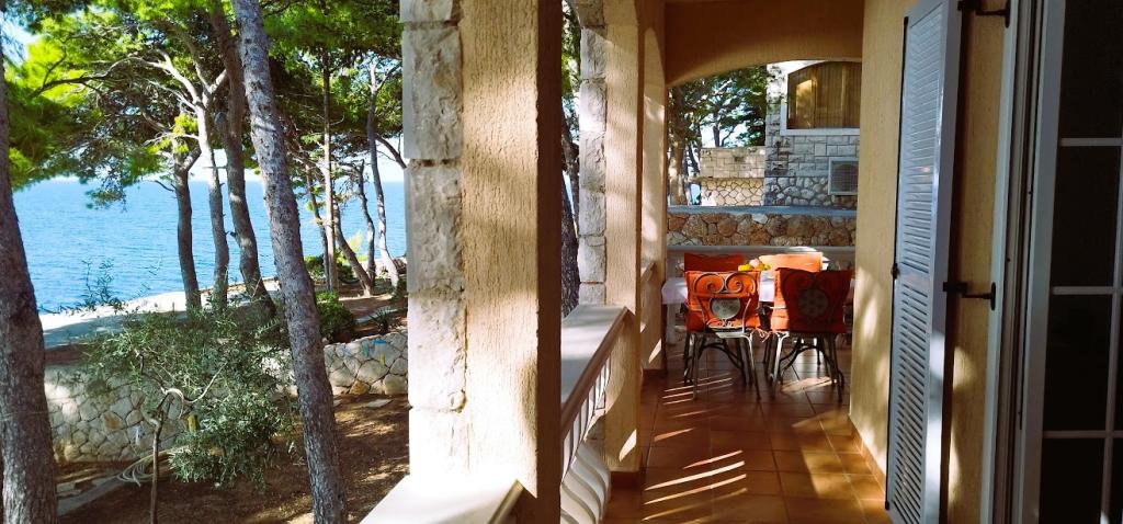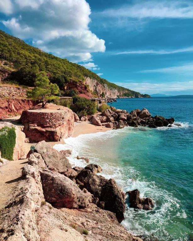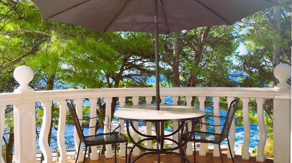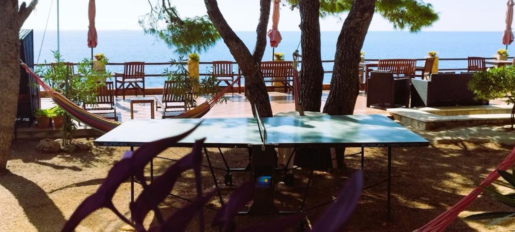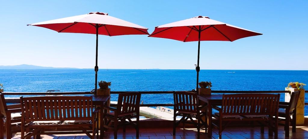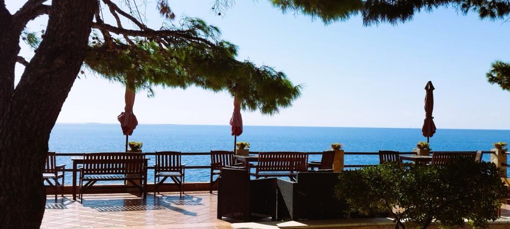 Naša vila se nalazi pokraj mora (cca 30 m) a do nje se stiže asfaltnom cestom koja u blizini i završava. Vila je samostojeća u borovoj šumi na parceli veličine cca 900 m², u podnožju je garaža za šest automobila objekt je priključen na gradski vodovod, trofaznu struju i u dometu je GSM-a, fiksni telefon i besplatni brzi bežični internet. Među borovima su kaskadni platoi za ping-pong i druge aktivnosti. U vrtu je i grill za slobodnu uporabu te brojne sunčaljke i ljuljačke kao i skautske/mornarske mreže, šah, karte...svaka soba ima vlastitu kupaonicu, te svoju loggiu, terasu, ili balkon, sve sobe su s pogledom prema moru u svakoj sobi se nalazi po jedan hladnjak, satelitski TV.