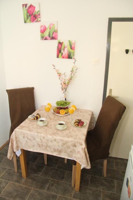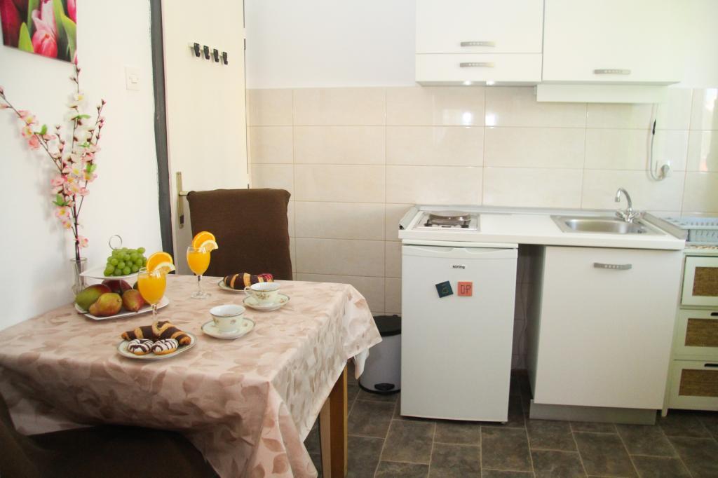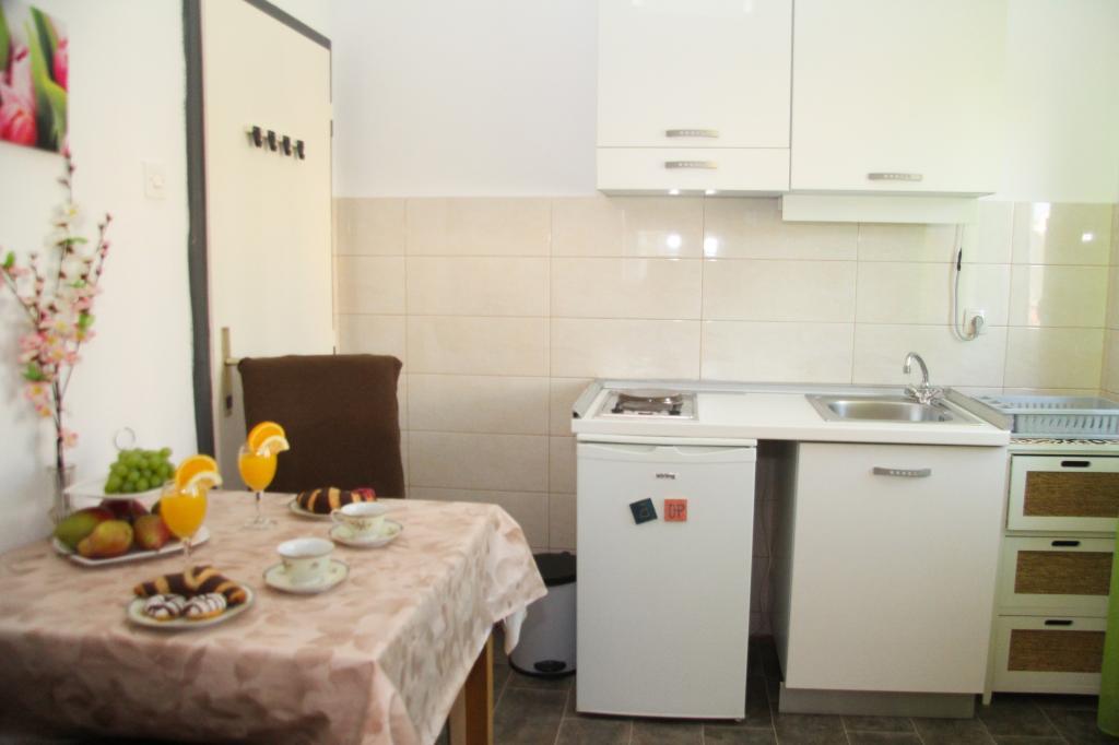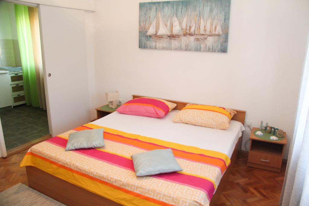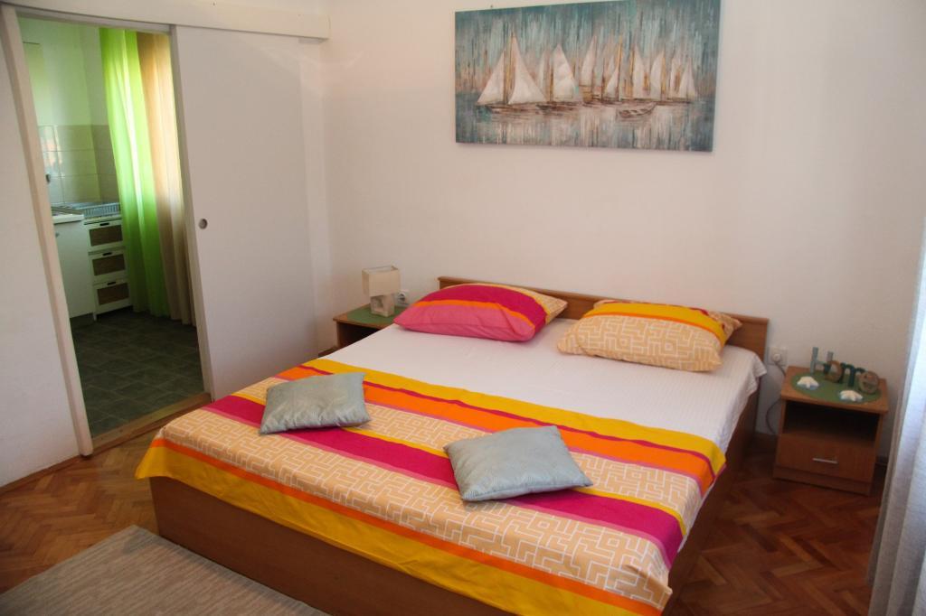 Kompletno opremljen apartmana u mirnom predjelu mjesta. Apartman je smješten prvi red do mora (vlastiti put do plaže), udaljenost 150 m, 2-3 minute hoda do šljunčane plaže, a 5 minuta hoda do pješčane plaže. Osiguravamo parkirno mjesto u dvorištu objekta gdje se nalazi i roštilj koji se može slobodno koristiti. Apartman sadrži bračni krevet, wc i kuhinju, (sveukupno 30 kvadrata). Kuhinja sadrži potpuno posuđe, kuhalo za vodu i mikrovalnu. U apartmanu se nalazi klima uređaj koja se dodatno ne naplaćuje kao i WI- Fi. U cilju nam je osigurati lijep i ugodan pa čak i nezaboravni boravka kod nas.
