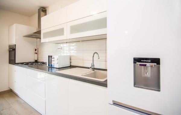 Novouređeni moderni dvosobni apartman sa dnevnim boravkom. Udaljen od centra i prekrasnih plaza samo deset minuta hoda. Natkriveno parkirno mjesto.
