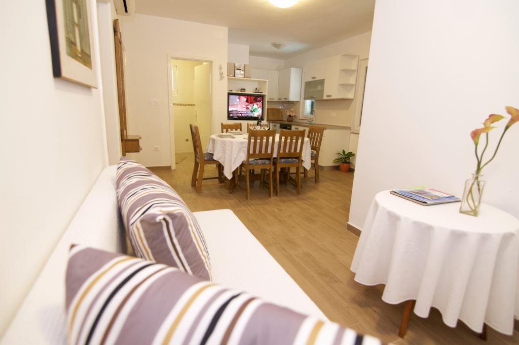 Apartmani Fjaka. Nudimo vam apartmane za 4/5 osoba, apartmane za 2 osobe i samostojeću kuće za najam do 6 osoba, sve dobro opremljene i potpuno namještene. 50 m od plaže. Sve smještajne jedinice imaju klima uređaj, bežični internet, SAT TV i besplatno parkirno mjesto u dvorištu kuće. Čišćenje nakon odlaska uključeno je u cijenu. Vrijeme dolaska i odjave može biti fleksibilno, ovisno o vremenu dolaska i odlaska. Vaši domaćini pružit će vam sve potrebne informacije za još ugodniji boravak.