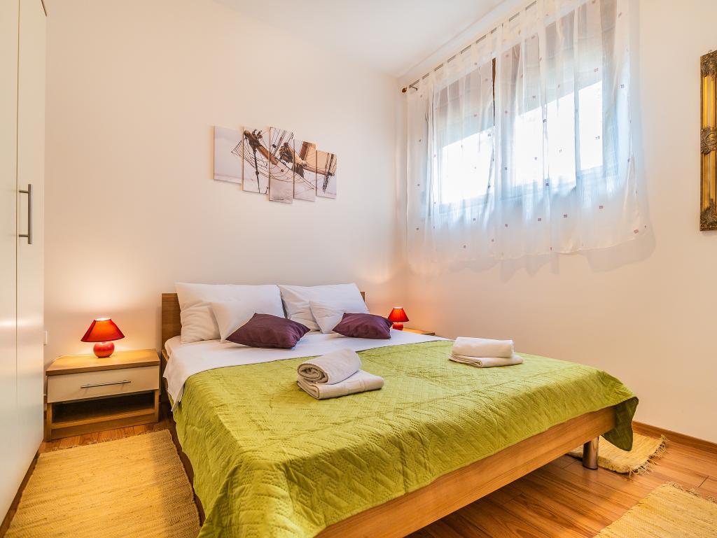 Apartman u lijepom i mirnom predjelu u Sv. Filipu i Jakovu, smješten prvi red do mora, pješčane plaže udaljene su stotinjak metara, a isto tako na tom području nalaze se i šljunčane plaže. Apartman se veže uz obiteljsku kuću, objekt ima svoju okućnicu kao i svoje parkiralište. Dućan je odmah preko puta ceste. Do centra mjesta ima 10 minuta hoda, kao i do potrebitih objekata kao što su pošta, sportsko igralište te liječnik.