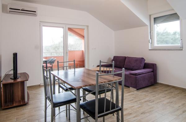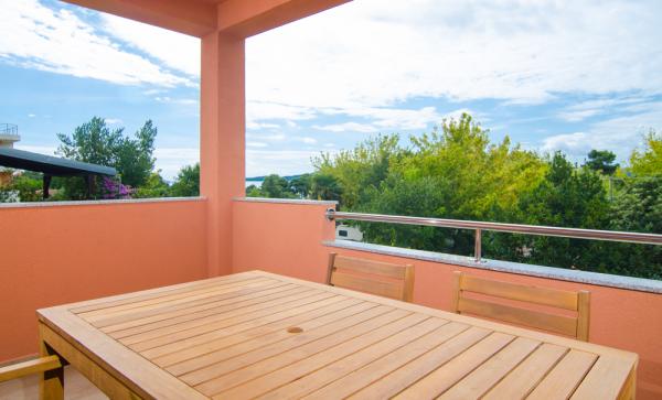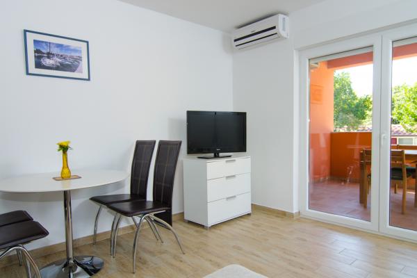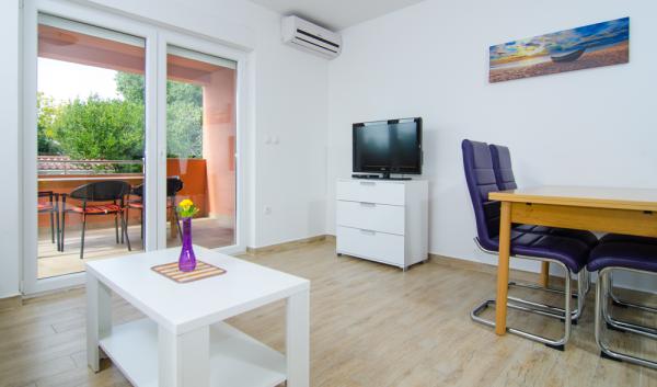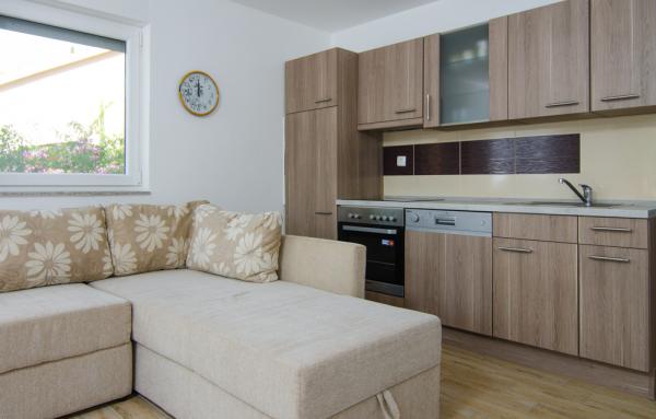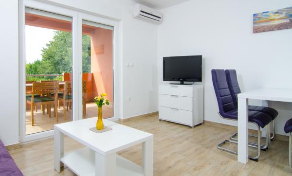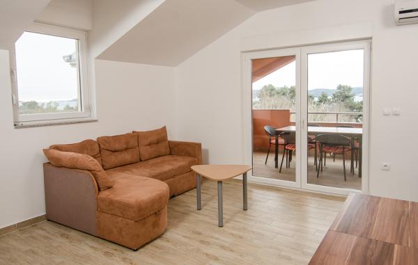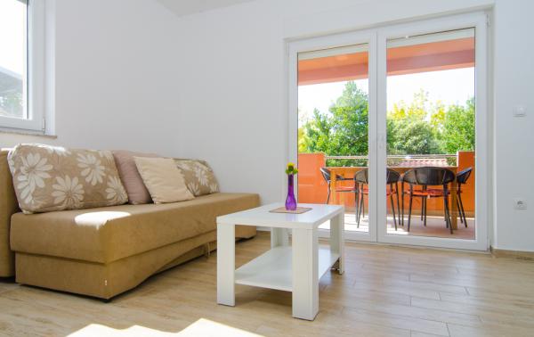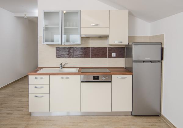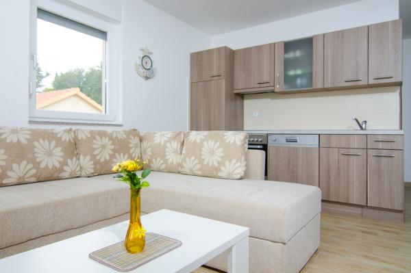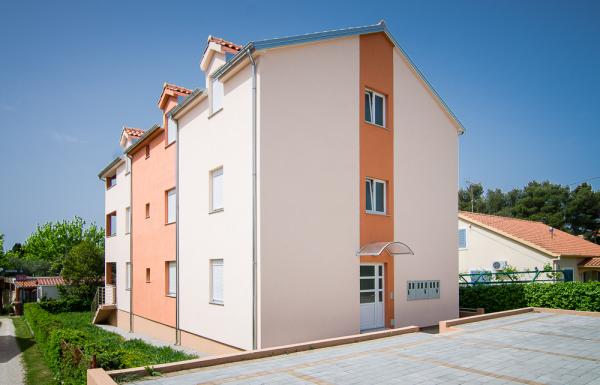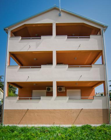 Potpuno nova apartmanska kuća s ukupno 6 apartmana. Na svakome katu - prizemlje, prvi kat i drugi kat (potkrovlje) nalaze se po jedan apartman A4 2 i jedan apartman A2 2. Potpuno novi suvremeno opremljeni apartmani. Sasvim blizu središtu mjesta, a u prvome redu do mora i plaže. Udaljenost od plaže 3 minute hoda, udaljenost od središta 5 minute hoda. Pogodan za smještaj obitelji s djecom. Zbog neposredne blizine centralne plaže idealno za boravak od svibnja do rujna. Kompletna kuhinja sa strojem za pranje posudja, blagovaonica i dnevni boravak su u jednome prostoru. Check in: nakon 14:00, check out: do 10:00 Vlasnik apartmana ne stanuje u ovoj kući.