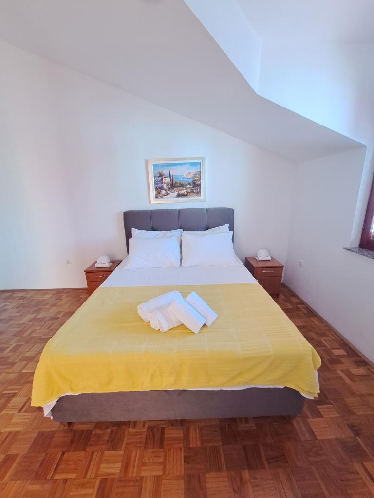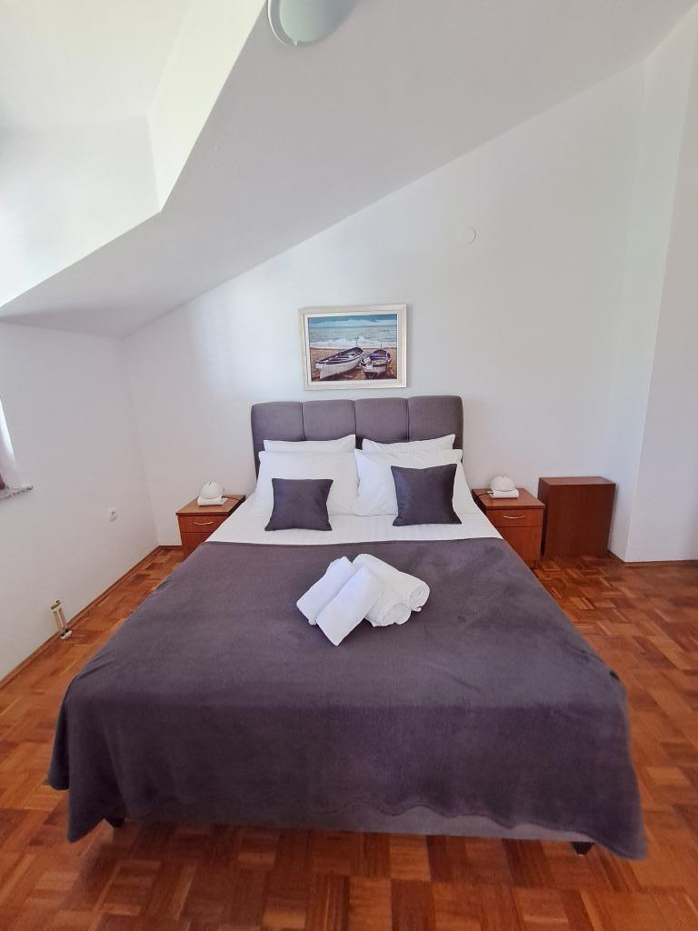 Apartmani se nalaze u novoj kući, u samom centru mjesta, 5 minuta hoda od plaže kako šljunčane tako i pješčane. Parkirna mjesta za svaki auto su osigurana u dvorištu objekta gdje se nalazi i roštilj koji se može slobodno koristiti.