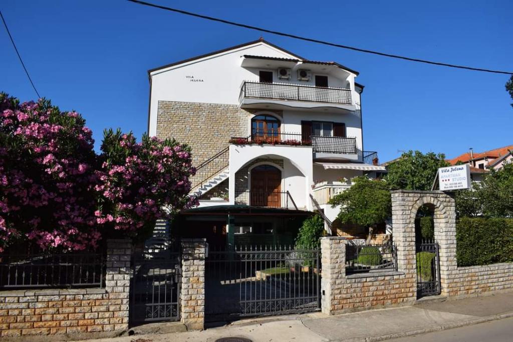 Vila Jelena izgrađena je 1983. godine od bračkog kamena. Kuća od tri kata, u kojoj živi sam domaćin, ima prekrasan pogled na Pašmanski kanal i otočje. Cijela kuća se sastoji od šest studio apartmana i dva stana, gdje se svakom gostu nude što više kupaonskih i kuhinjskih pribora. Svakom gostu se nudi opcija roštiljanja, gdje ima i mjesto za sjedenje. Apartmani i stanovi su opremljeni klima uređajem te se nudi besplatnan WiFi.