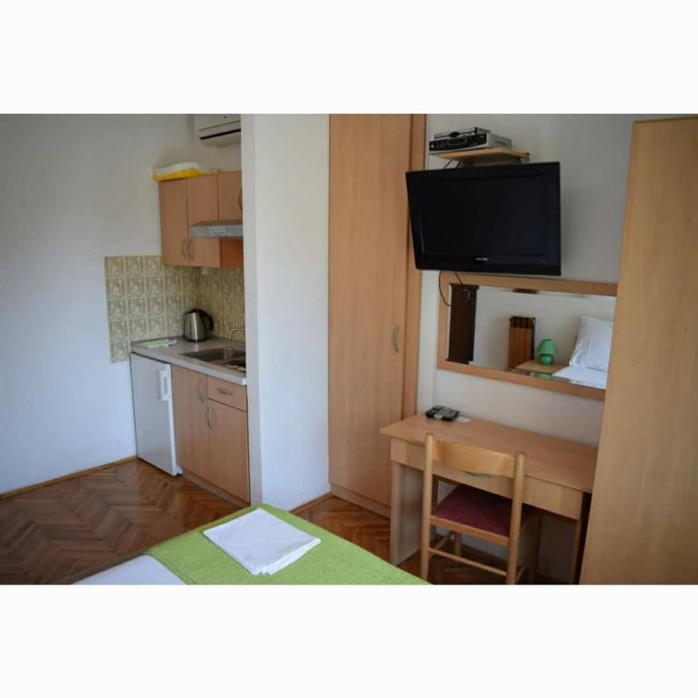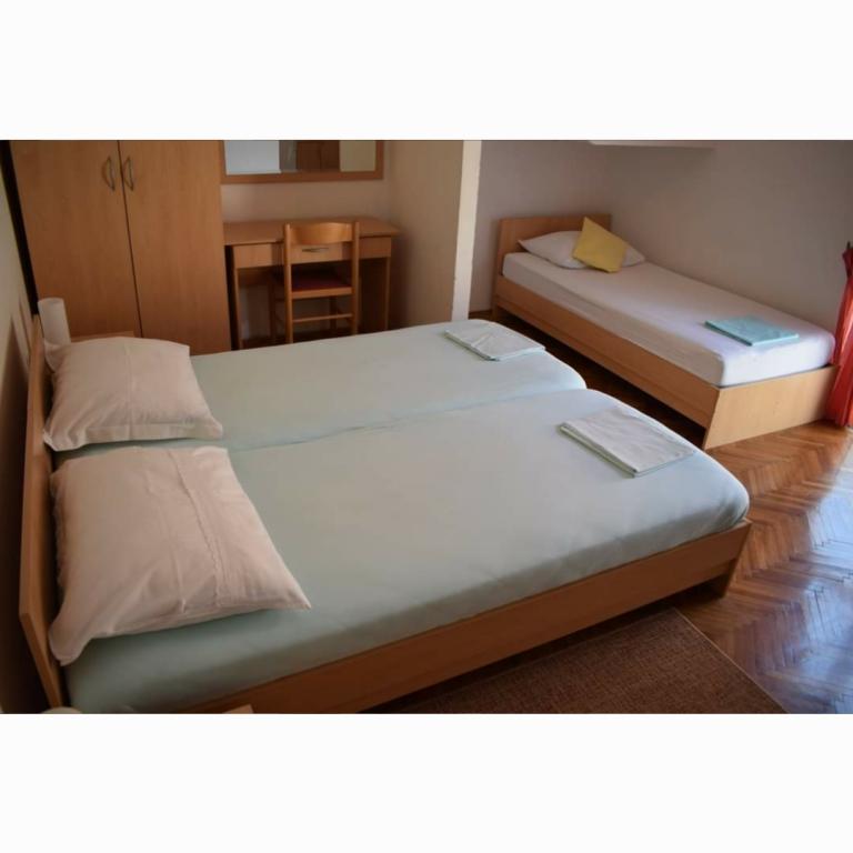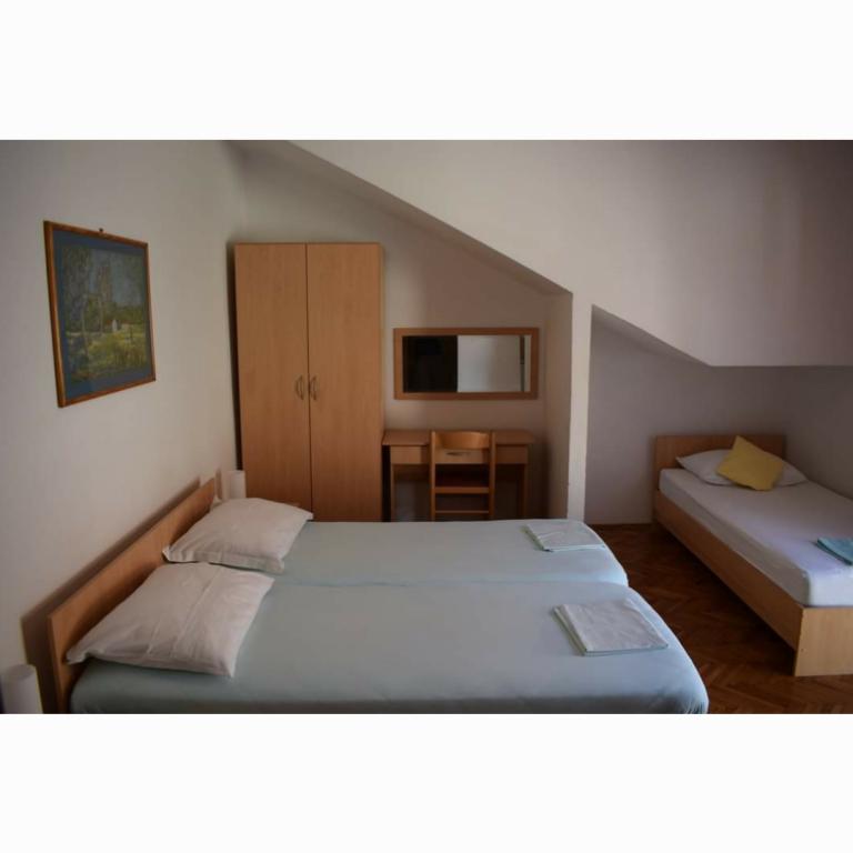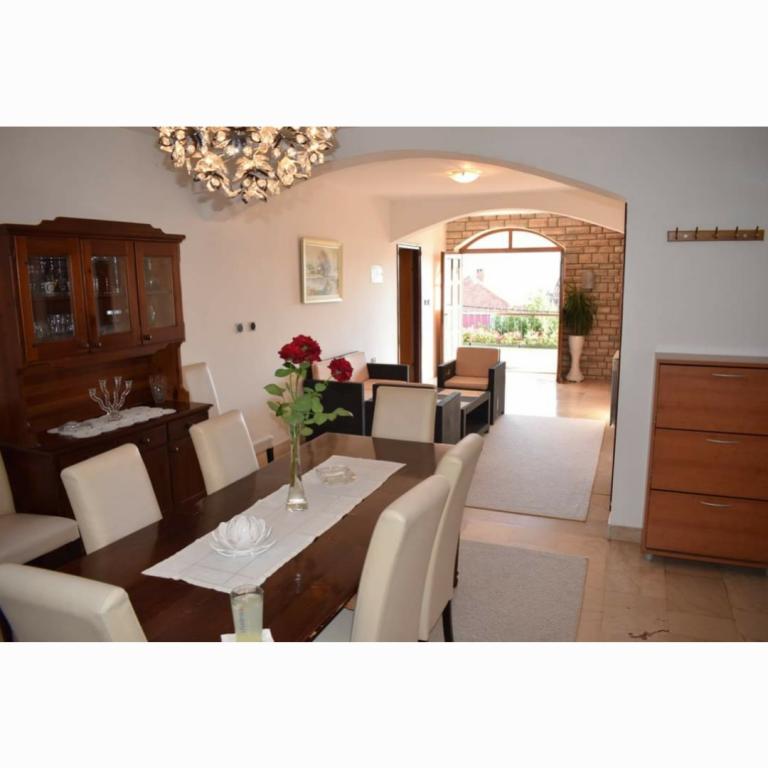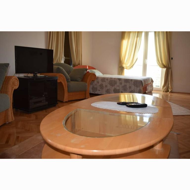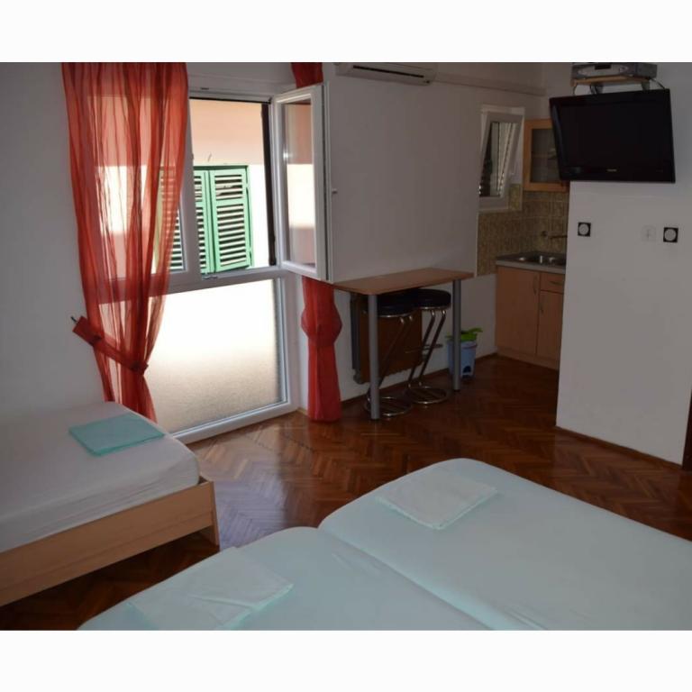Turistička pristojba je uključena u cijenu. Šaljemo pismenu potvrdu rezervacije (voucher)Smještaj je bio čist, kuhinja je bila vrlo dobro opremljena, puno tanjura, lonaca, tko uglavnom koristi domaću kuhinju u usporedbi s restoranima. Još jedna prednost velikog apartmana su dvije kupaonice, perilica posuđa, perilica rublja, čisti ručnici. Vlasnici su bili ljubazni, uslužni, odličan pristup moru. Svaka soba je imala svoj balkon. Bili smo izuzetno zadovoljni..