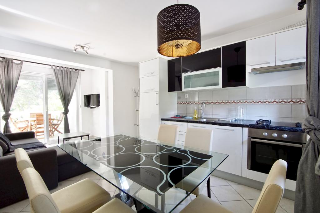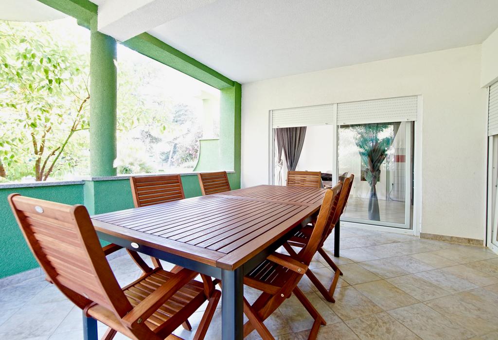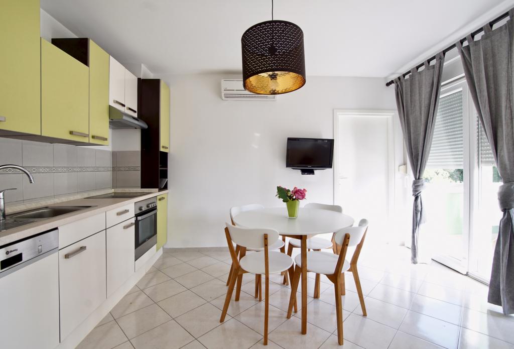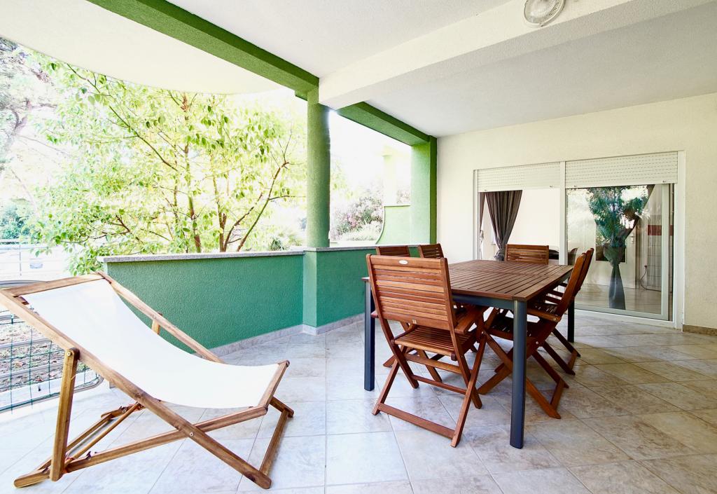 Turistička pristojba nije uključena u cijenu.Dodatne usluge i oprema: ručnici i posteljina, kuhinjska opremljena sa posuđem, dječji krevetić, pegla i fen, čišćenje i pospremanje je kod svake promjene gosta. Objekat je okružen zelenilom u lijepom prostranom dvorištu. Na dvorištu se nalazi roštilj te stol i stolice. Iza zgrade ima 8 parkirnih mjesta. Korištenje roštilja i parkinga je besplatno. Na obali se mogu unajmiti barke za samostalan razgled otoka, postoje i organizirani izleti na Kornate, a do čuvenog i svjetski poznatog nacionalnog Parka Krka je oko 30 km. U Biogradu na moru koji je udaljen 2 km nalazi se veliki disco, te ima 3 velika hipermarketa. Na oko 25 km od nas je grad Zadar kojeg svakako treba doživjeti.